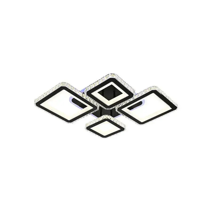 Lustra LED cu telecomanda si cristale QUADRIS RGB este o piesa de iluminat moderna si spectaculoasa, cu un design format din 4 patrate stilizate, finisate in negru si decorate cu cristale stralucitoare. Cu o putere de 82W, ofera o iluminare versatila si dinamica datorita functiei RGB. Cele patru patrate negre, impodobite cu cristale, creeaza un aspect geometric elegant si sofisticat. Cristalele vor reflecta si refracta lumina LED integrata, generand un efect sclipitor si o atmosfera luxoasa. Telecomanda inclusa iti ofera control nu doar asupra temperaturii culorii (rece, calda sau neutra) si intensitatii luminii (dimabila), ci si asupra functiei RGB, care iti permite sa alegi dintr-o gama variata de culori pentru a crea efecte de iluminare personalizate si vibrante. Finisajul negru al structurii accentueaza modernitatea designului si pune in valoare stralucirea cristalelor si posibilitatile oferite de iluminarea RGB. Cu o putere de 82W, este ideala pentru a ilumina livinguri mai mici, dormitoare sau alte incaperi unde se doreste un element de design cu impact si o atmosfera adaptabila.
