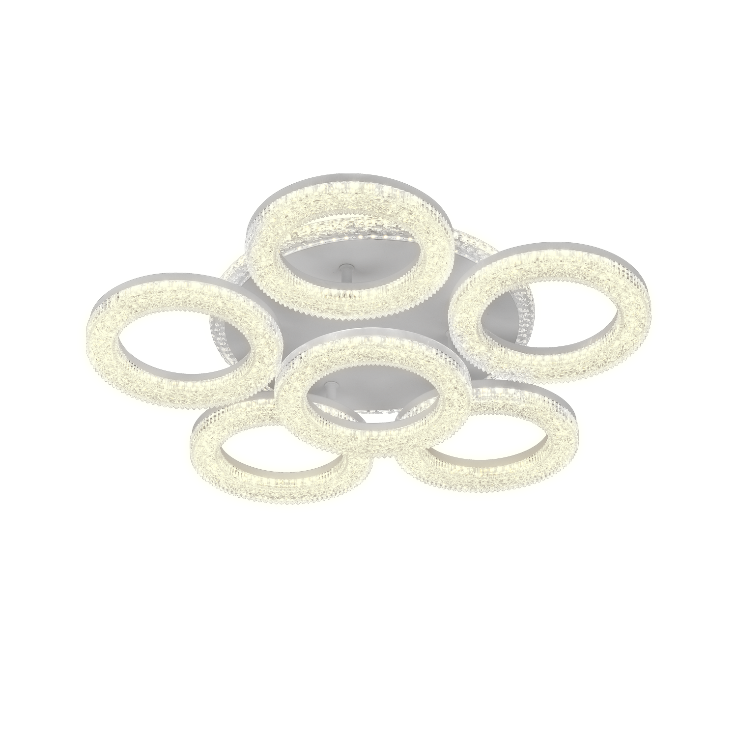 Lustra LED FREJA cu Telecomanda, 90W, 3000K/4000K/6000K, Dimabil, Alb, Cristale, 6 Cercuri ModernLight Concept