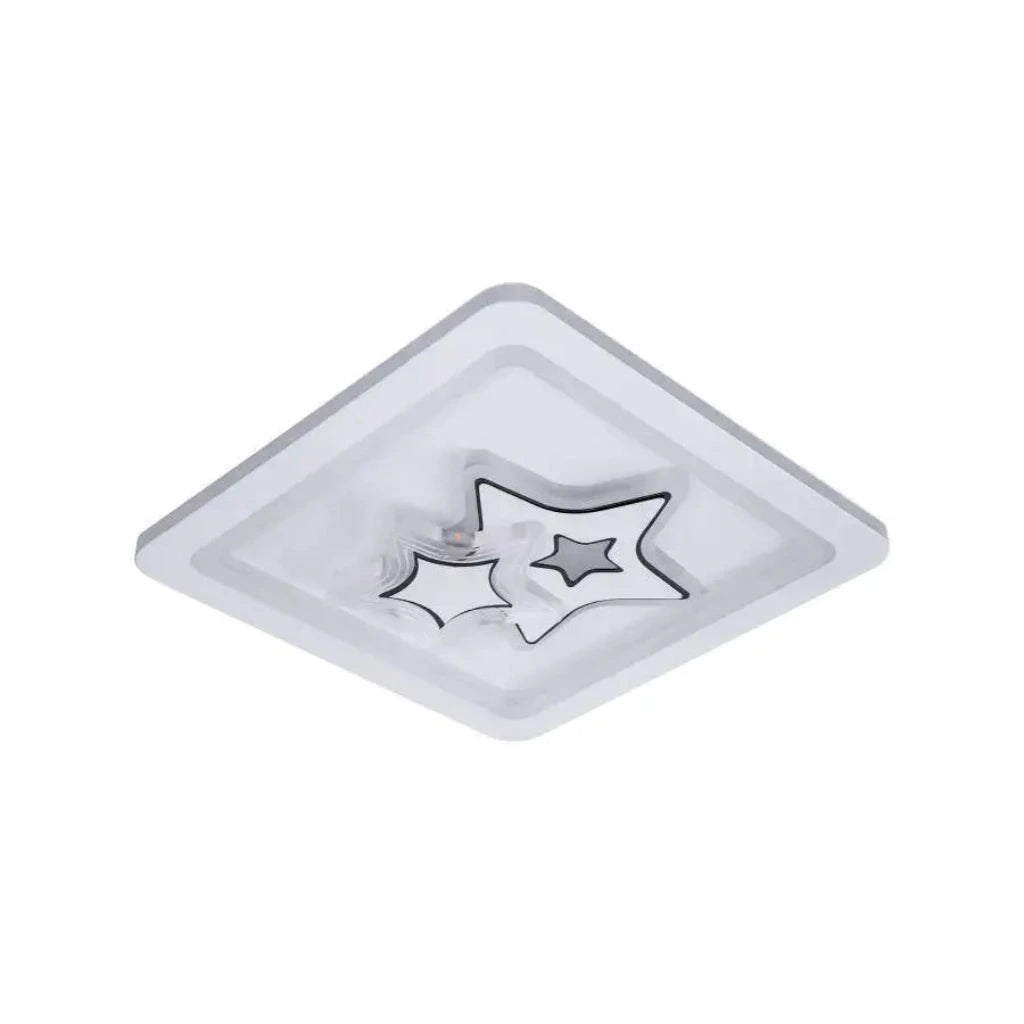 Descopera farmecul unei lustre moderne care aduce magie in camera copilului tau. Cu un design patrat elegant in nuante de alb si elemente decorative in forma de stele, aceasta lustra LED se integreaza perfect in universul celor mici, creand o atmosfera speciala si primitoare. Construita special pentru spatii moderne, lustra se monteaza aplicat pe tavan, avand o forma patrata compacta de 23x23 centimetri si o inaltime discreta de doar 5 centimetri. Dimensiunile sale echilibrate o recomanda atat pentru camera copilului, cat si pentru holuri, unde ofera o iluminare placuta si uniforma. Iluminare Adaptata Nevoilor Cele trei surse de lumina incorporata ofera o combinatie perfecta intre lumina calda si neutra, ideala pentru activitatile zilnice. Cu o putere de 15W si un flux luminos de 1080 lumeni, lustra asigura iluminarea optima pentru spatiile mai mici, iar elementele decorative de lumina LED de culoare mov ofera un plus de stralucire si farmec camerelor celor mici. Banda LED integrata, cu o durata de viata impresionanta de 25.000 de ore, promite ani intregi de functionare fara griji, transformand aceasta lustra intr-o alegere practica pentru iluminatul de zi cu zi. Designul modern si constructia de calitate sunt completate de protectia IP20, care asigura functionarea in siguranta in mediul interior. Sistemul de pornire clasic face operarea lustrei simpla si la indemana oricarui membru al familiei.O alegere inspirata pentru cei care cauta sa combine functionalitatea cu elementele decorative moderne, aceasta lustra LED aduce un plus de personalitate si farmec in camera copilului sau in zona de hol, creand o atmosfera primitoare si placuta.