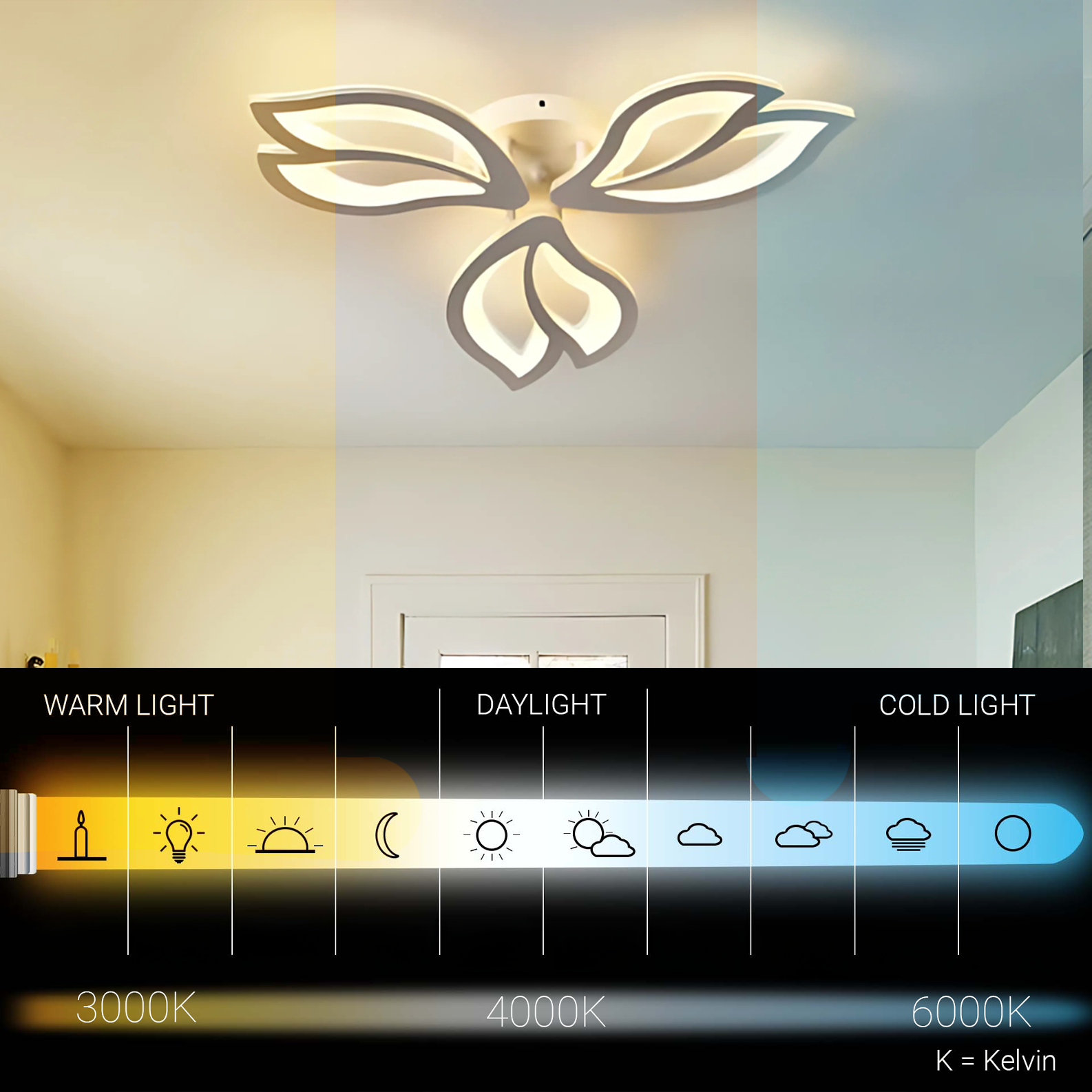 Utilizare: monteaza lustra pe tavan, apoi foloseste telecomanda pentru a seta intensitatea si tipul de lumina dorit. Este recomandata pentru incaperi de pana la 10 m², oferind o iluminare placuta si echilibrata.