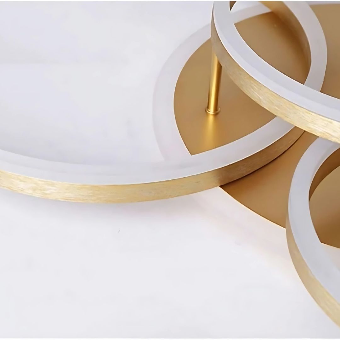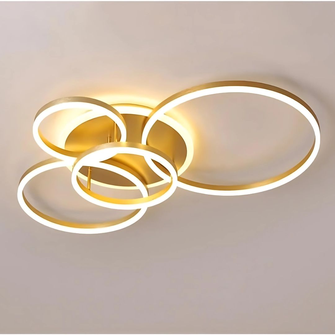 Transformă rapid atmosfera din casa ta cu lustra LED RINOVA, cu design modern în 4 cercuri și finisaj auriu. Oferă lumină uniformă și un look premium, potrivită pentru living, dormitor sau birou.