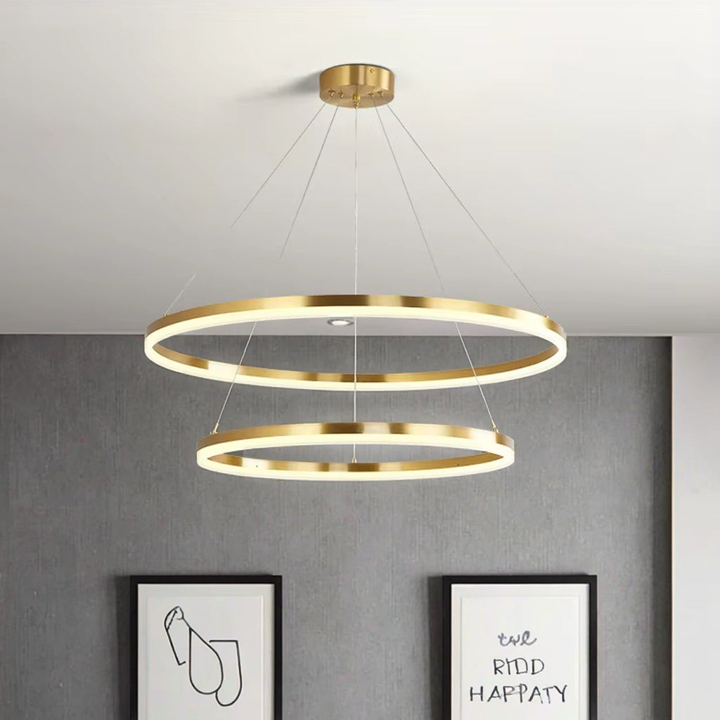 Lustră LED suspendată Christine 41W, 2 cercuri, dimabilă, auriu lucios, telecomandă