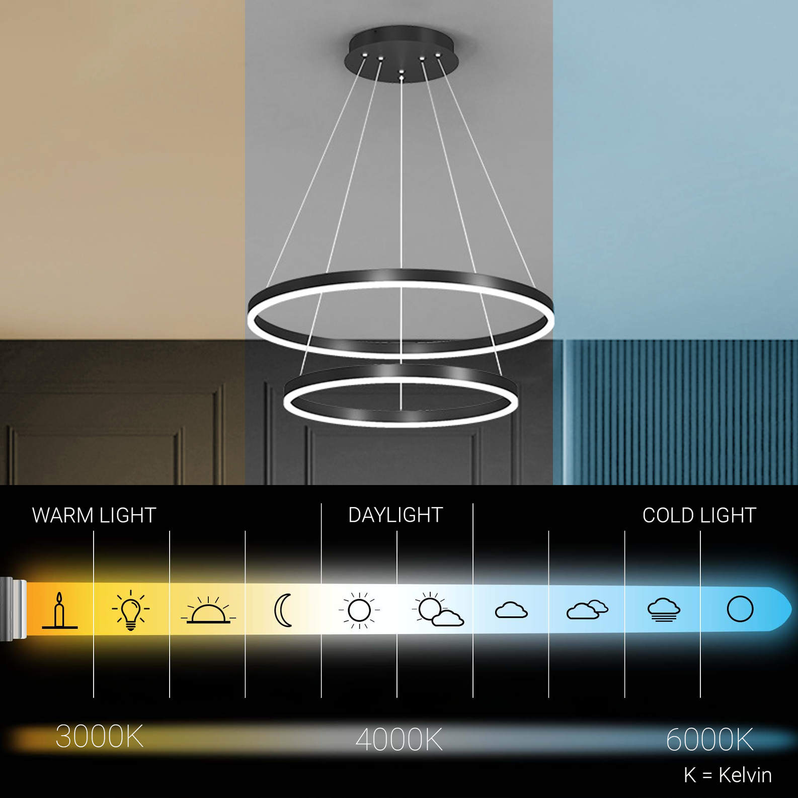 Lustra LED suspendata cu Telecomanda CASIANA 40W, 2 Cercuri, Lumina Rece/Calda/Neutra 3000K/4000K/6000K, Dimabila, Negru, Inaltime Reglabila, Metal si Acril