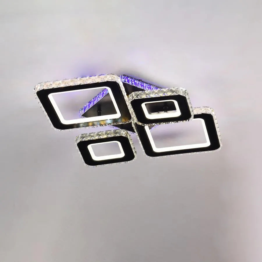 Lustră LED TERRANO 162W RGB cu telecomandă, 4 pătrate, cristale, negru, dimabilă