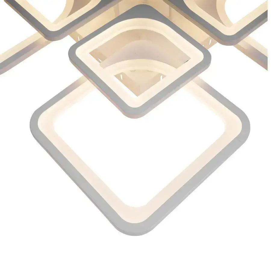 Lustră LED ZOE 138W cu telecomandă, 8 pătrate, dimabilă, lumină 3 culori, alb