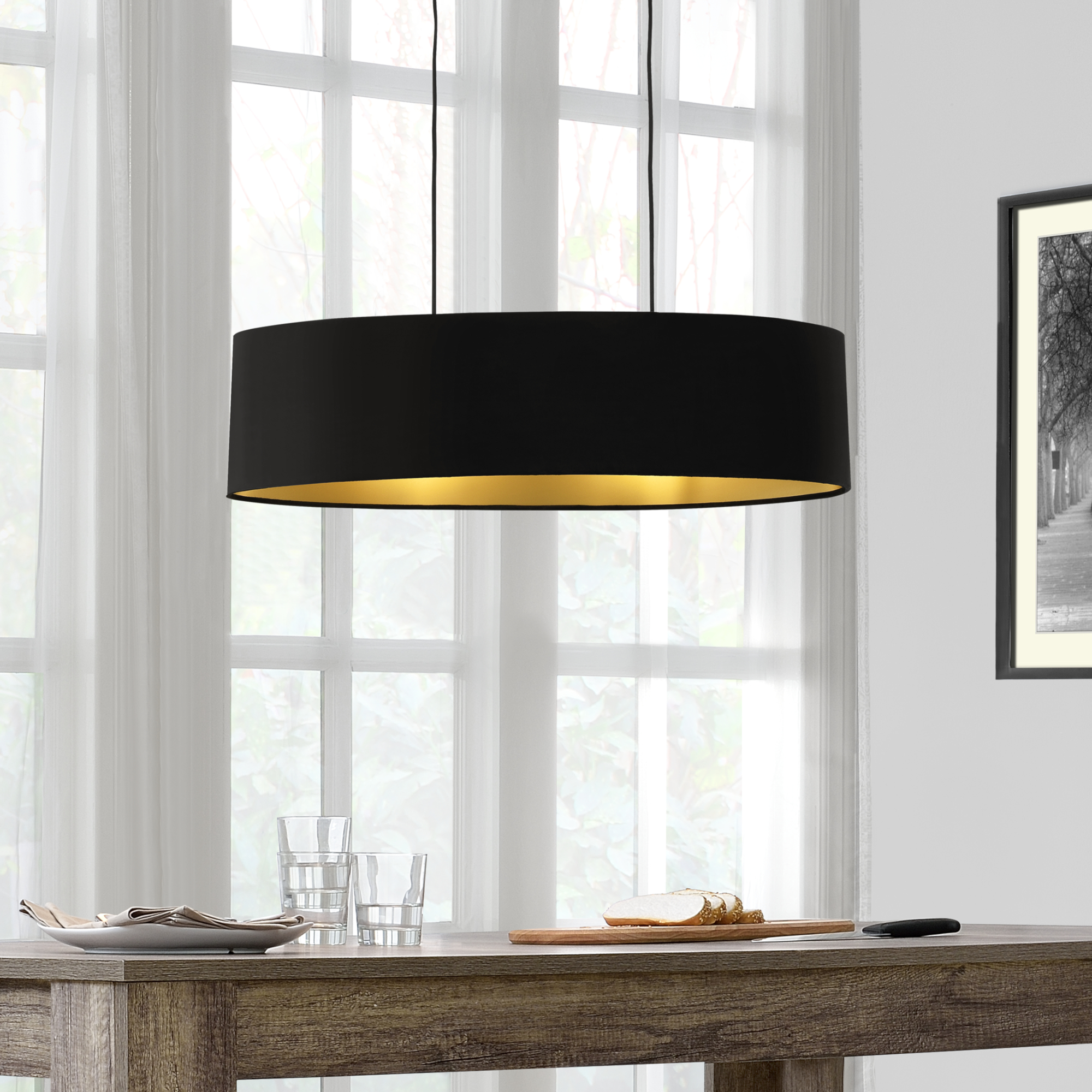 Lustra suspendată Westerbork, cu abajur textil negru și 2 socluri E27, este alegerea ideală pentru un decor modern și elegant. Potrivită pentru living, dining sau bucătărie, oferă lumină plăcută și un accent sofisticat, ușor de integrat în amenajări contemporane.