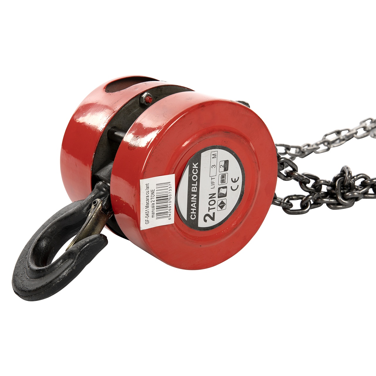 Utilizare: fixeaza palanul intr-un punct de prindere sigur, ataseaza carligul de sarcina si actioneaza lantul manual pentru ridicare/coborare controlata. Recomandat pentru incarcari/descarcari, montaj echipamente si operatiuni de mentenanta.