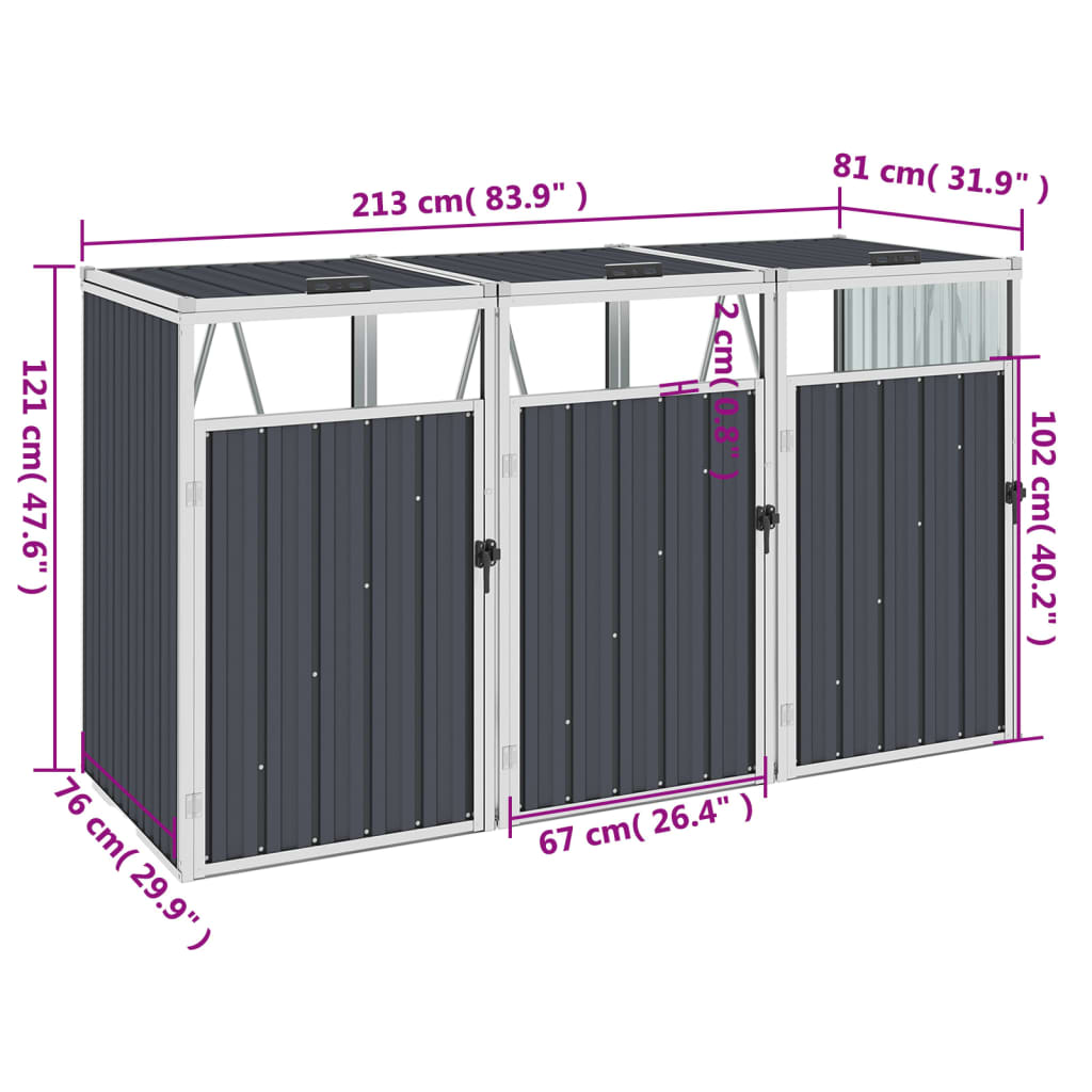 Magazie pubelă triplă, antracit, 213 x 81 x 121 cm, oțel GartenMobel Dekor
