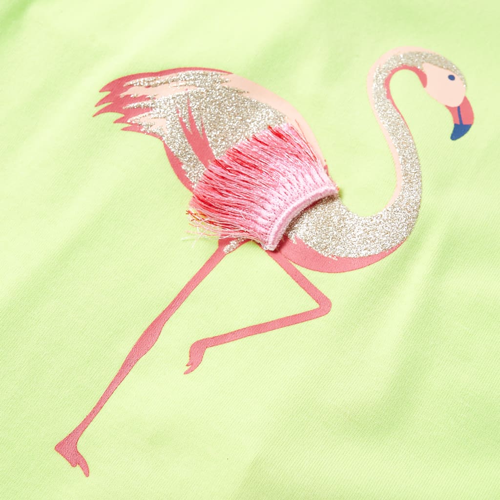 Acest maiou pentru copii are bretele elastice pentru umăr și o croială dreaptă. Imprimeul flamingo cu sclipici și bandă fantezie face ca maioul pentru copii să arate elegant și frumos. Topul pentru copii este confecționat din 57% bumbac, 38% poliester și 5% elastan, pentru o atingere moale și confortabilă.