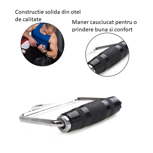 Manerul cauciucat permite o prindere ferma si confortabila. Datorita acestui fapt, ne putem concentra pe executarea exacta a exercitiului, fara teama ca manerul ne poate aluneca din maini. Fabricat din otel de inalta calitate va ofera posibilitatea de a va antrena cu o greutate semnificativa. Manerul este, de asemenea, rotativ, ceea ce creste gama de miscare.