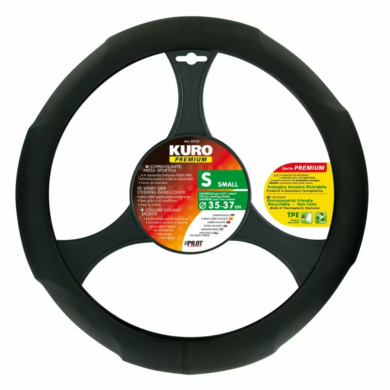 Mansonul de volan Kuro Premium este alegerea potrivita pentru soferii care isi doresc mai mult confort la condus, aderenta sigura si un aspect ingrijit al interiorului. Realizat din imitatie de piele perforata, acest husa volan auto ajuta la o prindere mai ferma in orice conditii si este usor de montat.
