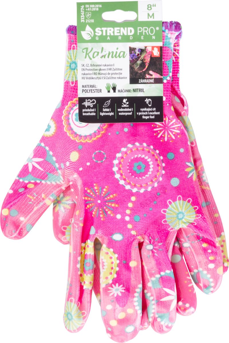 Mănușile Strend Pro Kalmia au palma acoperită cu nitril, oferind aderență bună și protecție pentru activități ușoare. Sunt respirabile, ușoare și impermeabile, iar materialul asigură un simț tactil excelent în degete, ca să lucrezi confortabil în grădină sau la treburile din casă.
