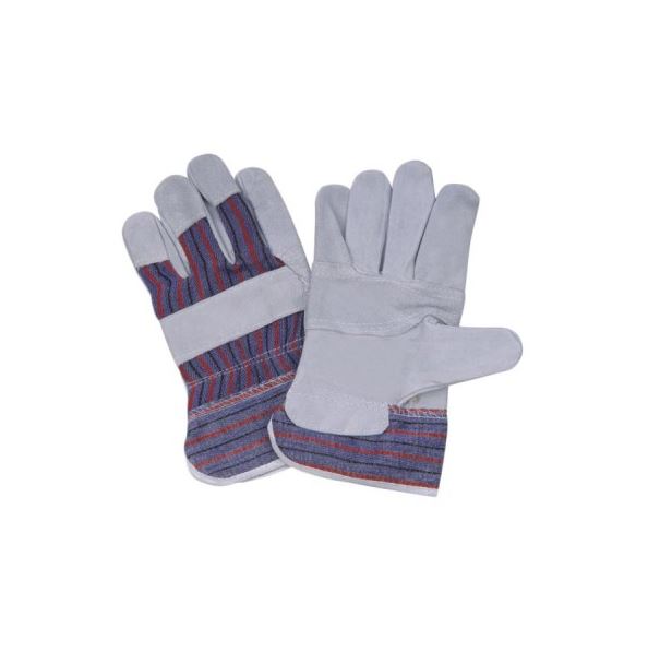 Manusi de lucru combinate dintr-o singura bucata de piele de vaca despicata in palma captusita, tesatura de bumbac pe spate, cu manseta intarita din bumbac, degete mari si aratatori din piele si varfurile degetelor acoperite.