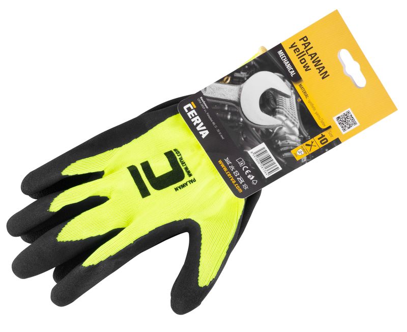 Mănuși de protecție PALAWAN 10/XL din nylon, cu palmă latexată (galben/negru)
