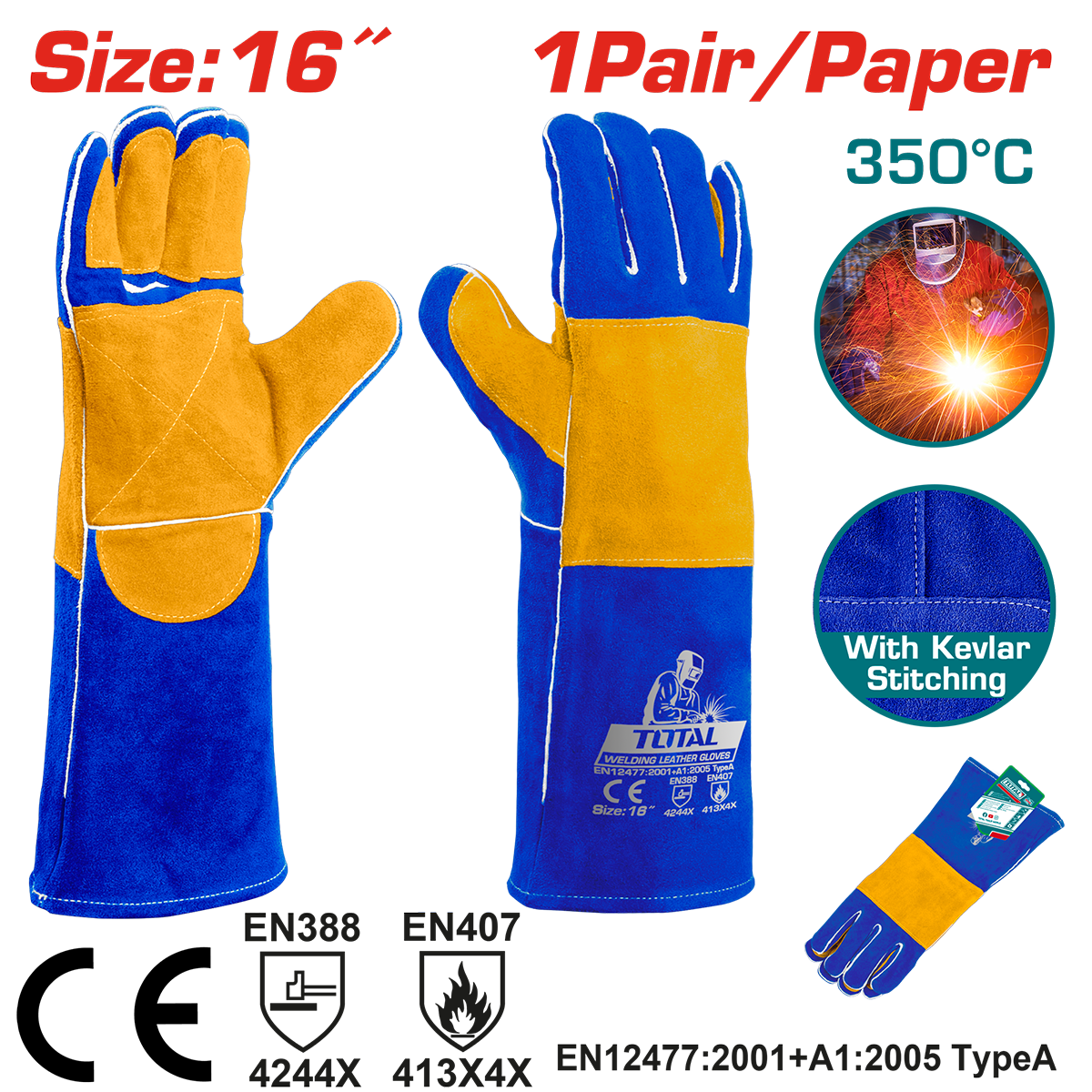 Specificatii Mănuși sudor TOTAL piele, mărimea 16,