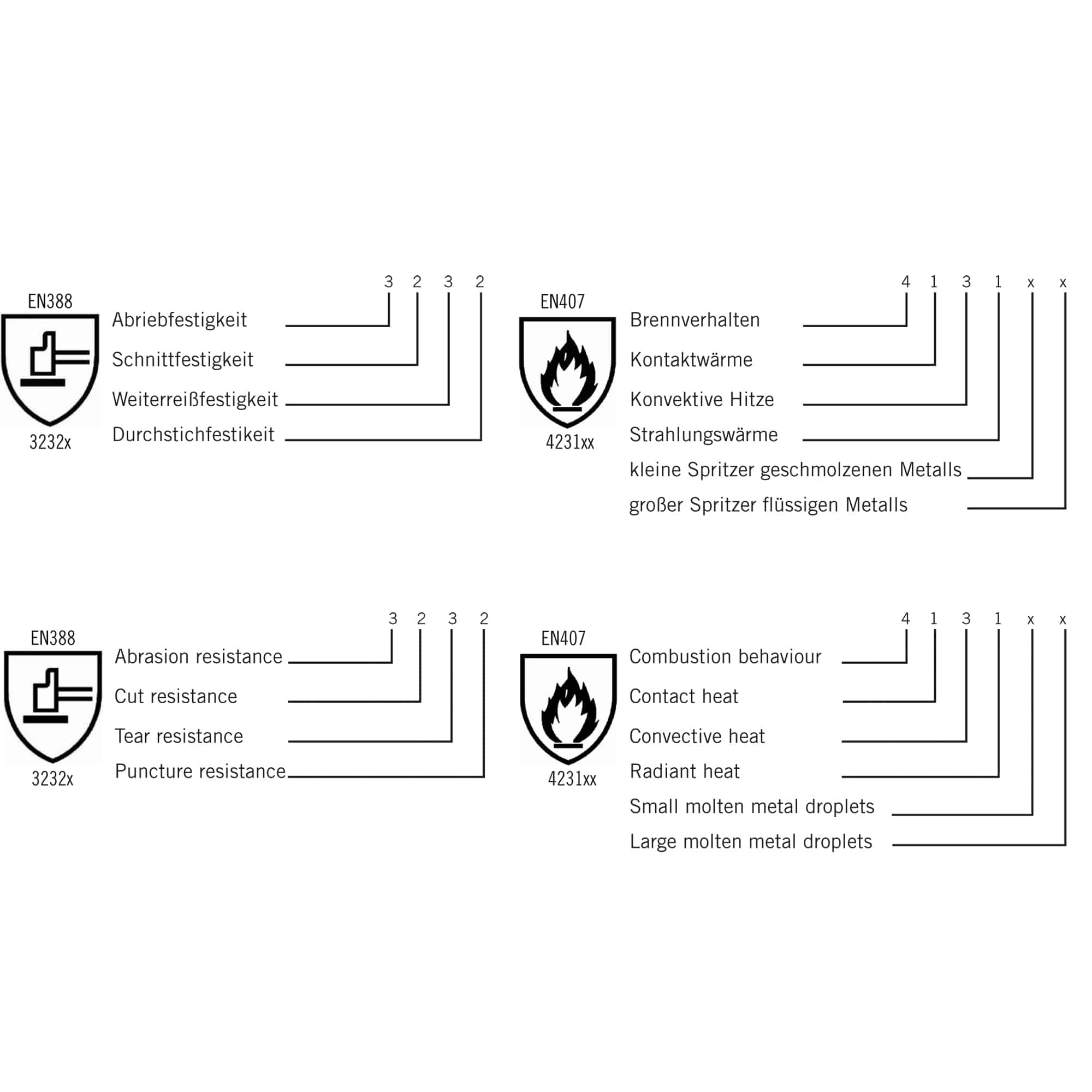 Aceste mănuși lungi și flexibile protejează mâna și brațul de flăcări și căldură. Sunt realizate 100% din piele. Culoare gri/negru. Mărime universală 24/XL. Material: 100% piele; căptușeală: 60% bumbac, 40% poliester. Caracteristici:- Dimensiuni: 41,5 x 14 x 1,5 cm (L x l x h)