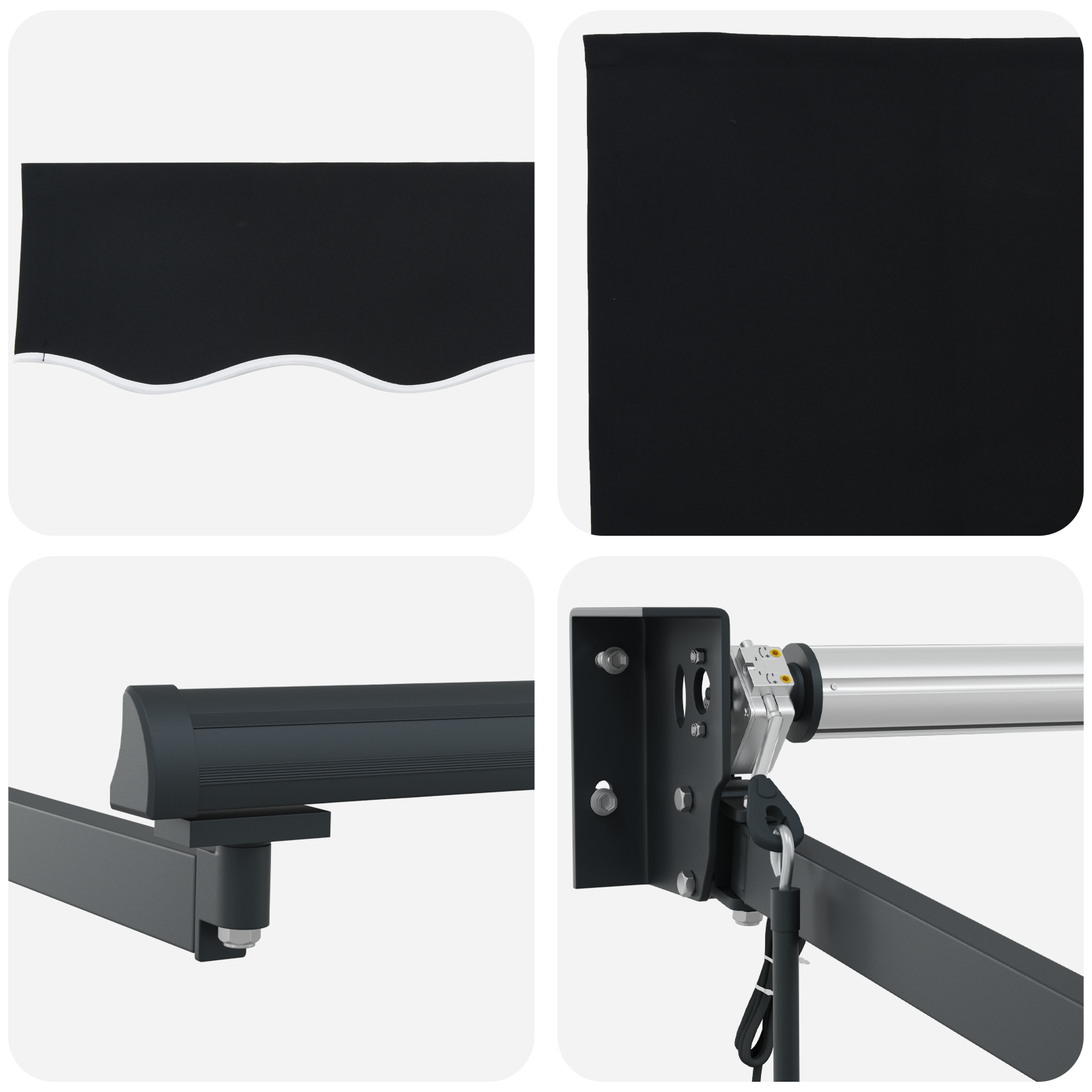 Această marchiză retractabilă e o alegere super pentru a-ți îmbunătăți spațiul în aer liber, oferindu-ți umbră și protecție de vreme. Cu țesătura sa neagră și unghiurile ajustabile, îmbină utilul cu plăcutul, fiind perfectă pentru balcoane și terase.