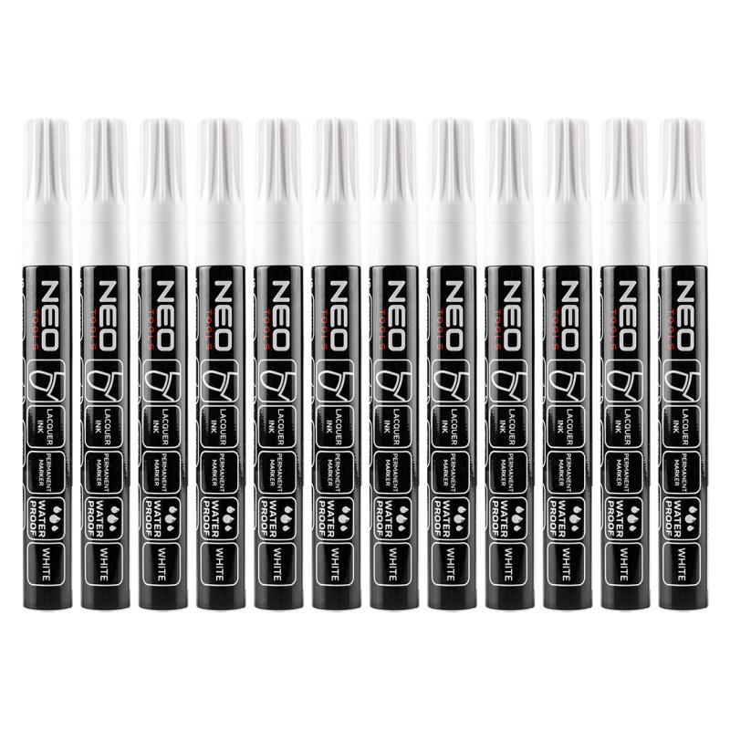 Marker de constructii, alb, permanent, rezistent la apa, lac, aluminiu, multipli de 12. NEO TOOLS 13-865 HardWork ToolsRange