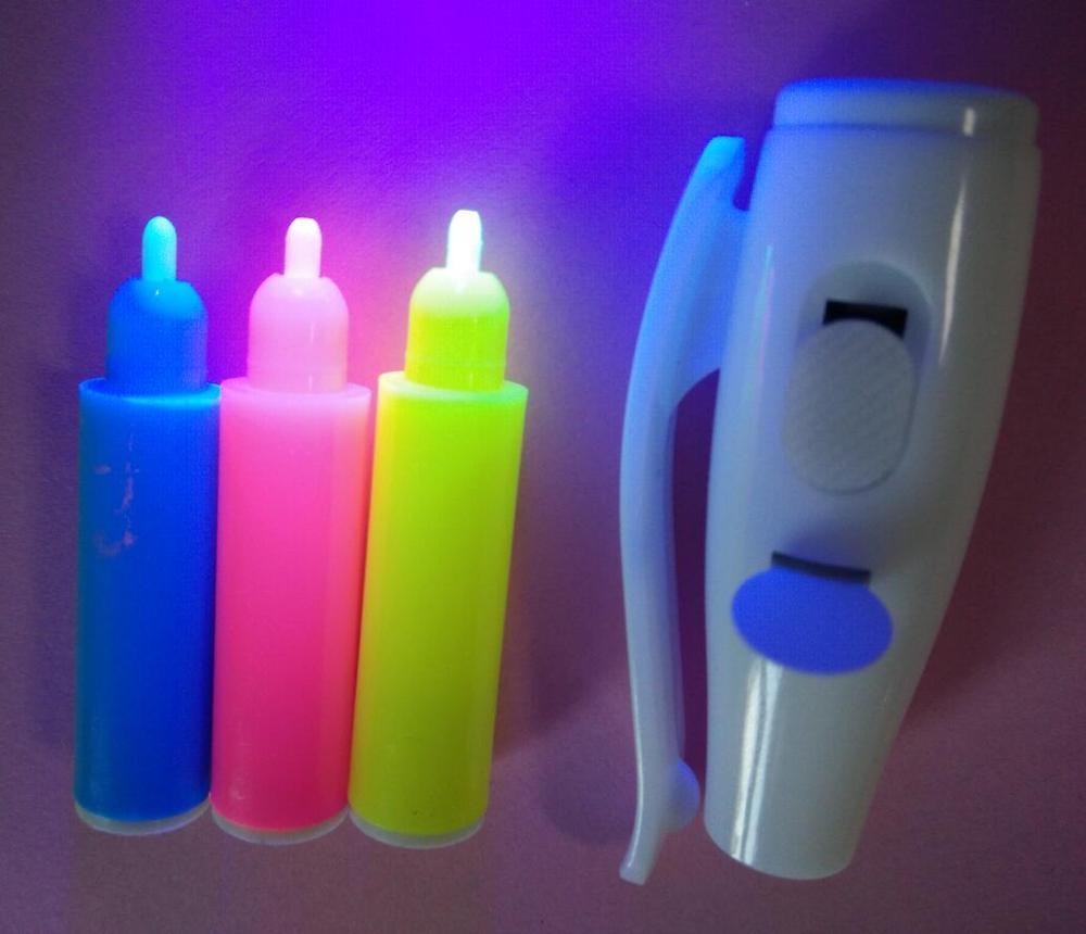 Marker invizibil 3 in 1 rosu, verde si albastru, cu lanterna UV incorporata