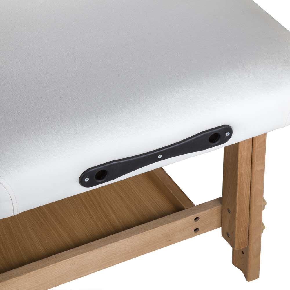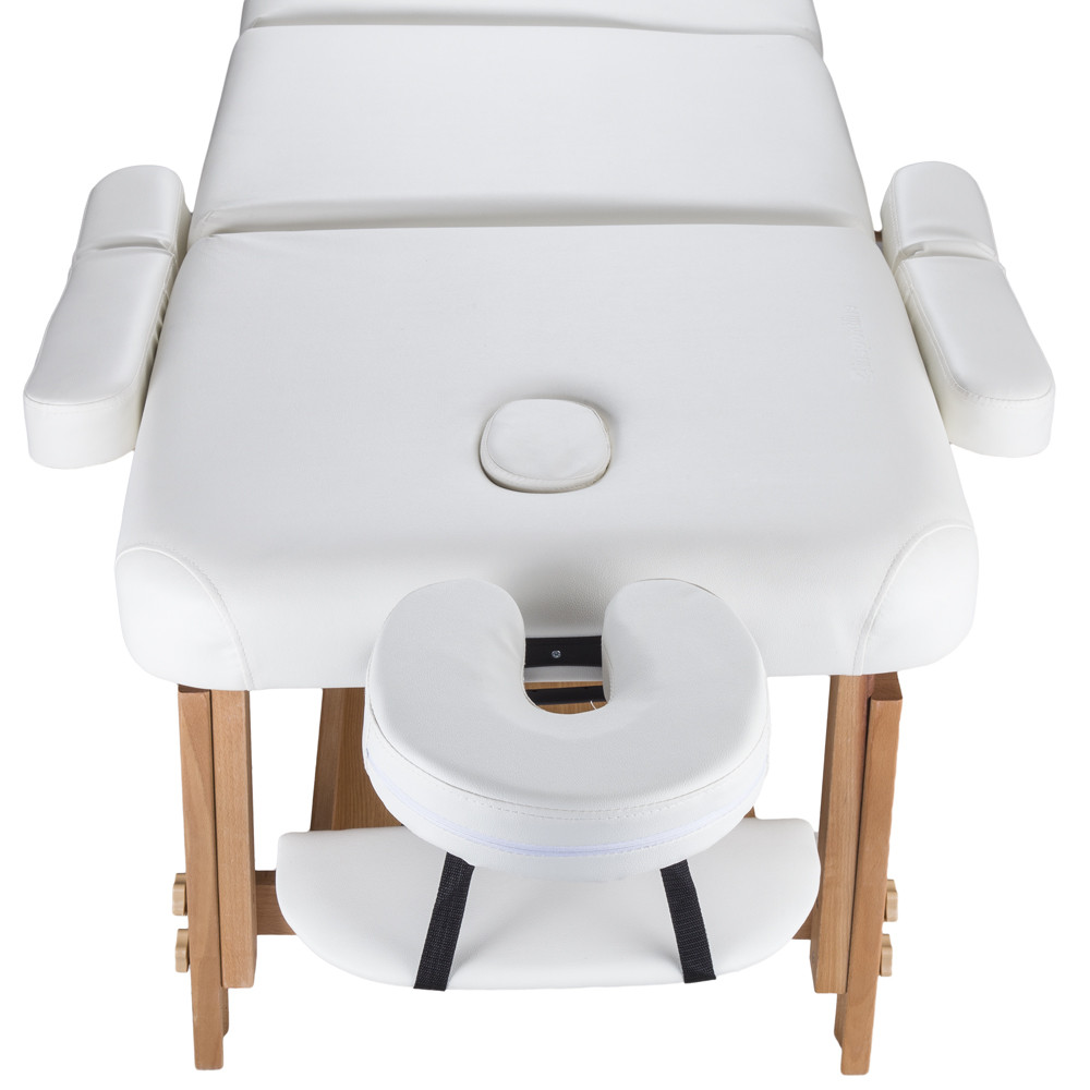 Datorita inaltimii diferite a utilizatorilor, masa de masaj este prevazuta cu 2 spatii diferite destinate sprijinirii fetei. In plus, masa este prevazuta cu 2 suporturi confortabile pentru brate.