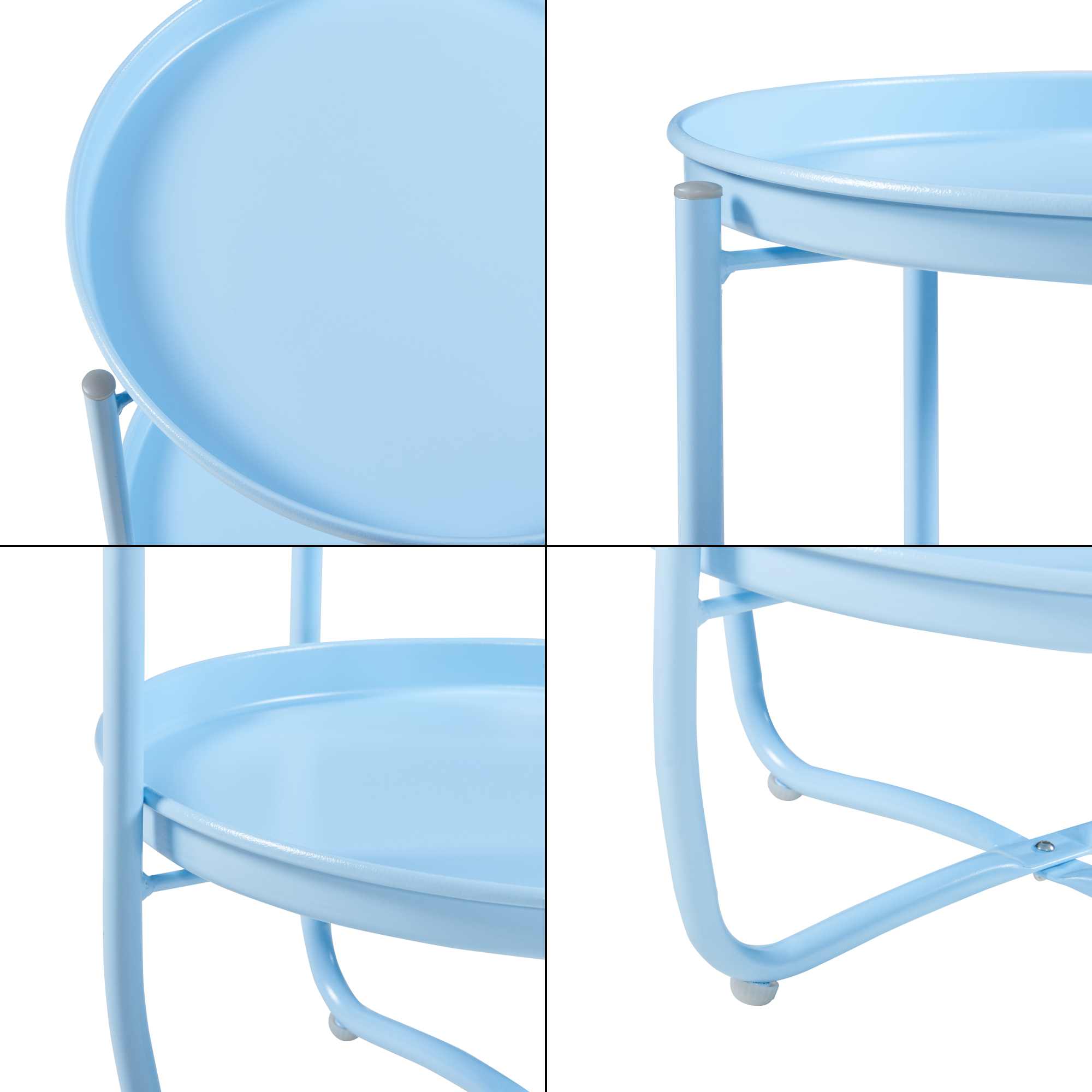 Masă auxiliară cu 2 tăvi detașabile Sandefjord este alegerea ideală pentru momentele de relaxare din grădină, pe balcon, terasă sau chiar în interiorul locuinței. Cu un design modern, aerisit și elegant, această masă auxiliară în nuanță albastru ciel oferă un plus de stil și funcționalitate oriunde o așezi.