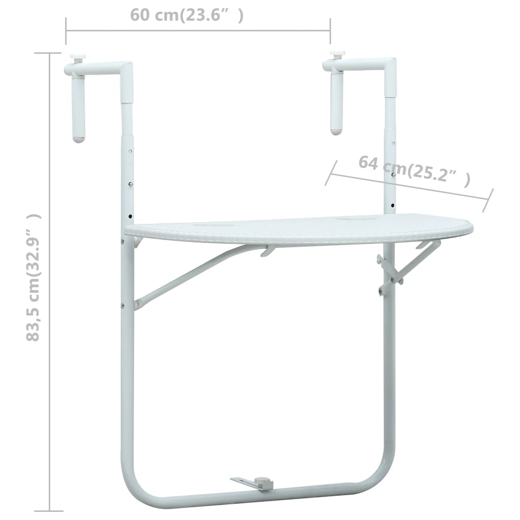 Masă balcon suspendată alb 60x64x83,5 cm plastic aspect ratan GartenMobel Dekor
