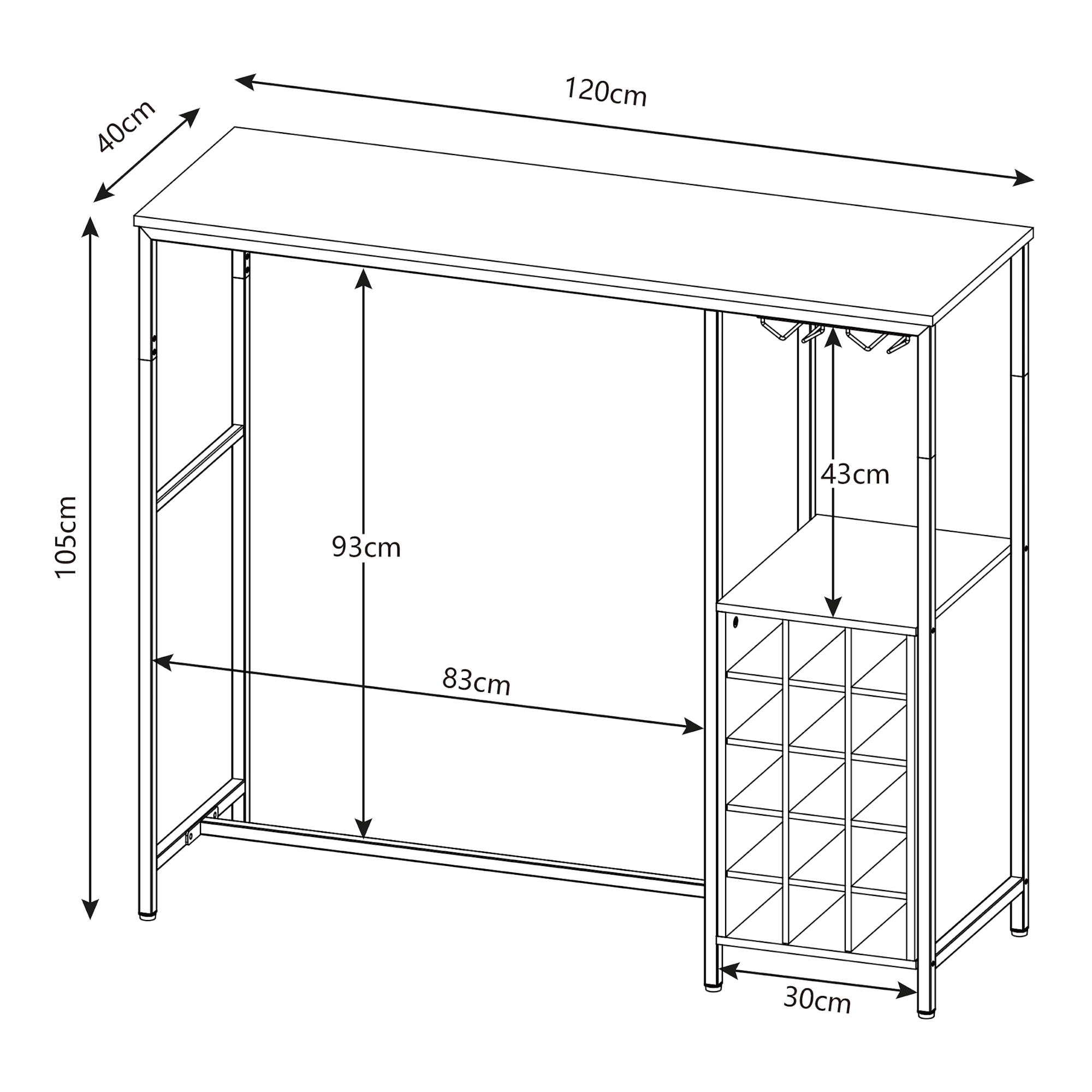 Masă bar Trøndelag 120x40x105 cm cu suport vin pentru 15 sticle