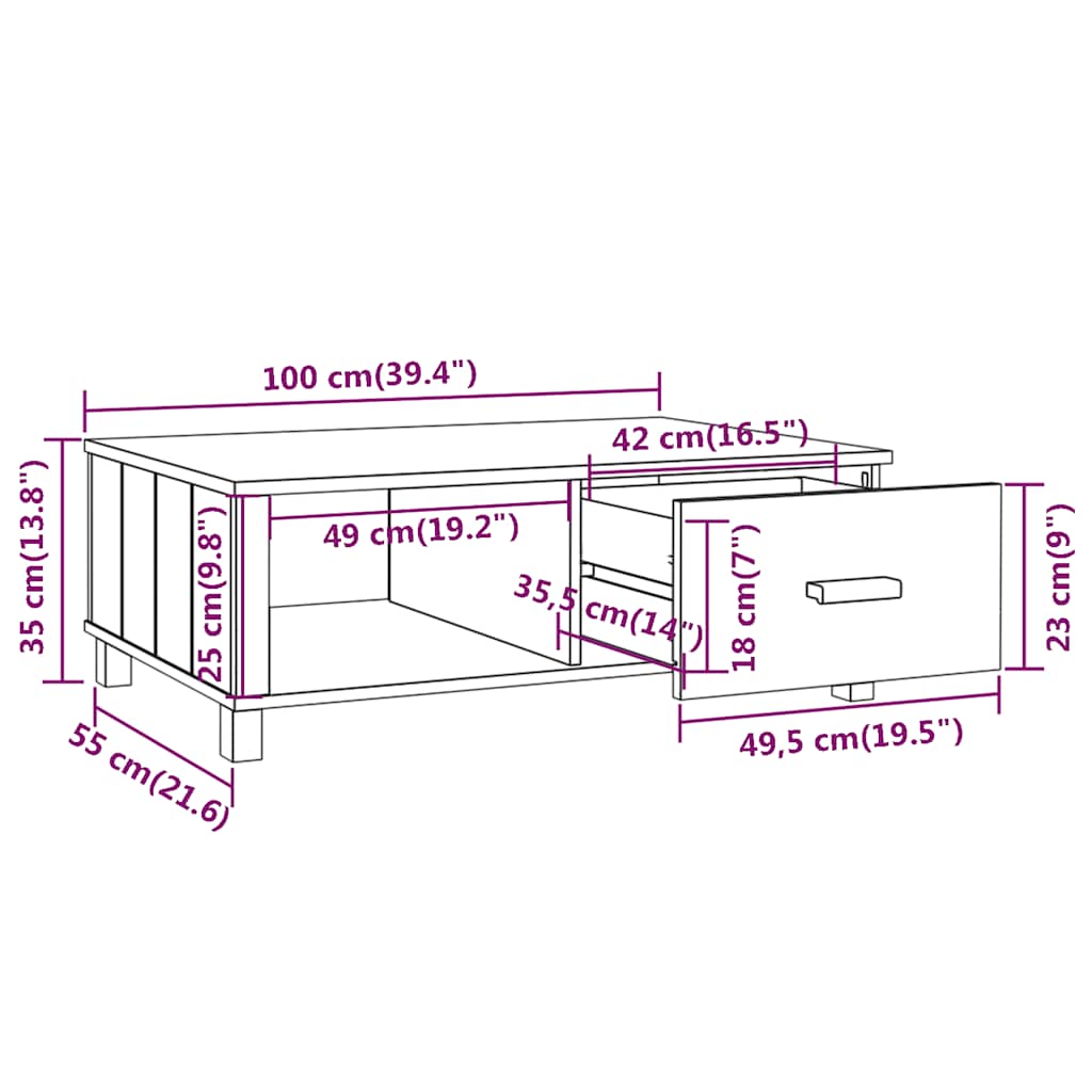 Masă cafea „HAMAR”, gri deschis, 100x55x35 cm, lemn masiv pin GartenMobel Dekor