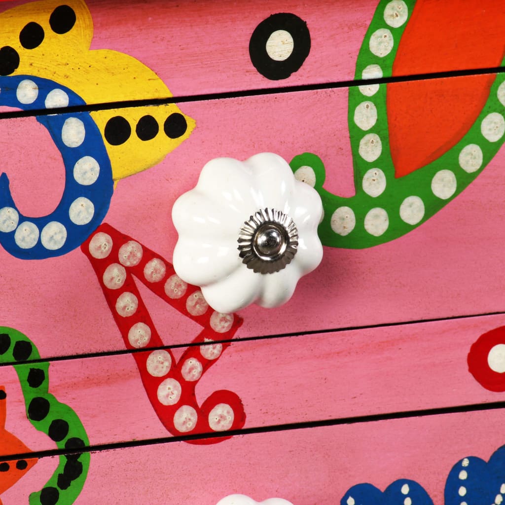 Masa este realizată manual din lemn de mango, care este atât durabil, cât și frumos, iar măiestria se adaugă stilului său retro spectaculos. Masa prezintă detalii decorative bogate, pictate manual, care emană o notă de eleganță și evidențiază aspectul rafinat. Mânerele distinctive facilitează deschiderea sertarelor și completează stilul mesei.