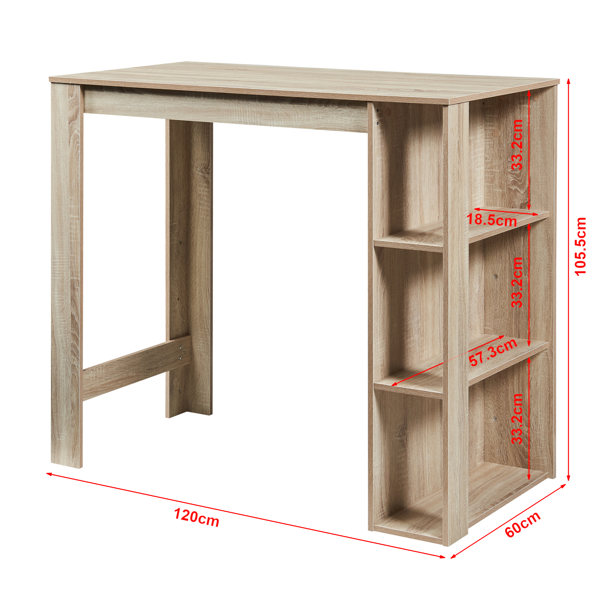 Masă de bar Danderyd 120x60x105,5 cm cu 3 polițe, finisaj stejar