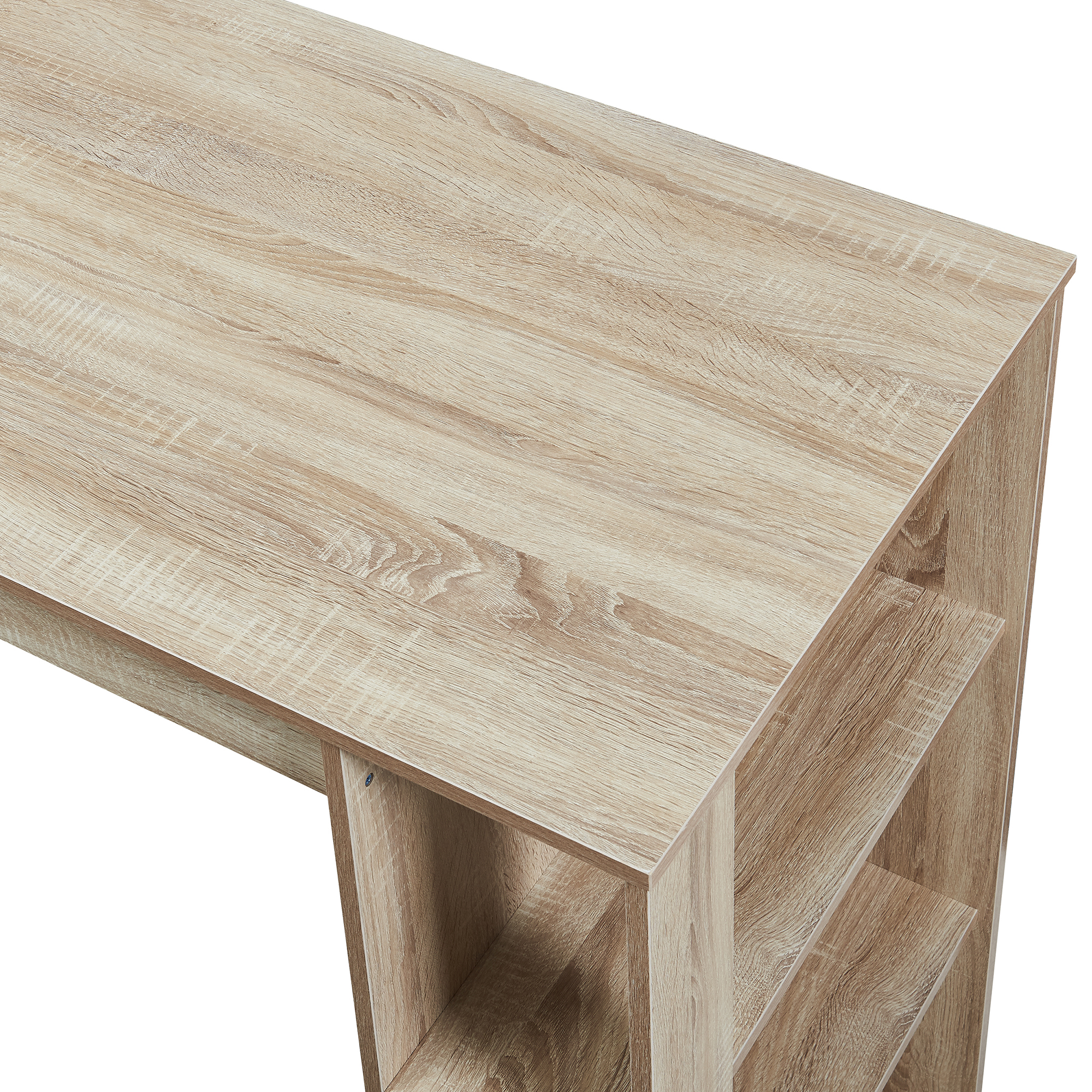 Blatul generos este potrivit pentru servirea mesei, băuturi, mic dejun sau activități de zi cu zi, iar raftul lateral cu 3 polițe deschise oferă spațiu suplimentar pentru pahare, sticle, ustensile sau decorațiuni. Designul compact o face excelentă pentru interioare moderne, unde fiecare centimetru contează.