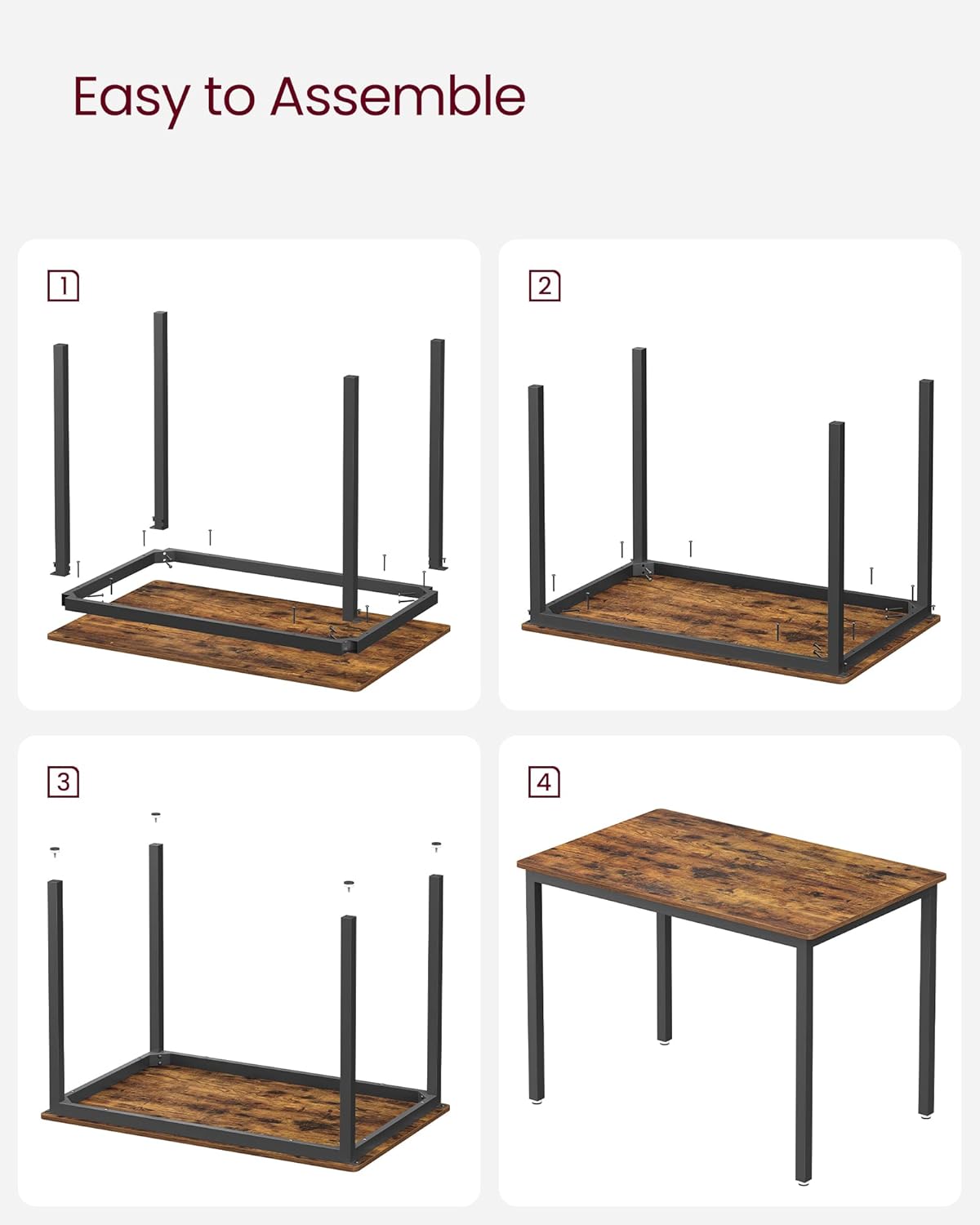 Masa de bucatarie VASAGLE pentru 4 persoane, stil industrial, maro rustic
