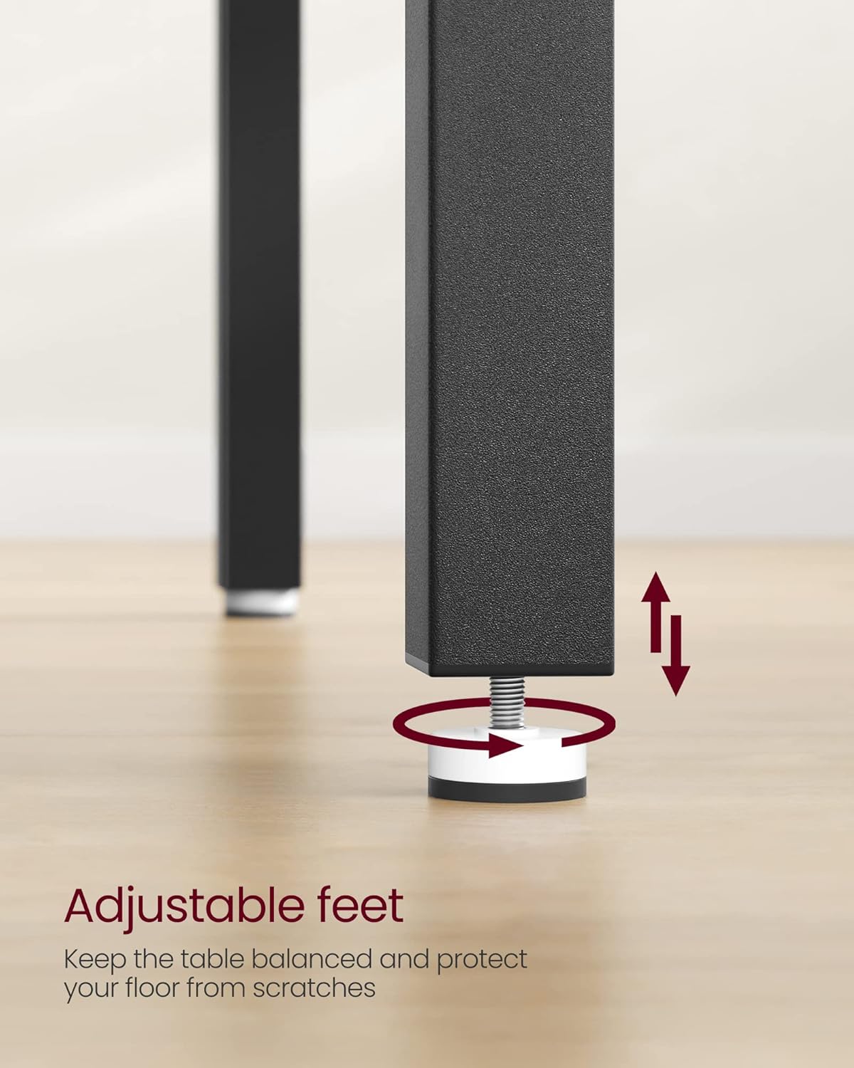 Datorita constructiei solide, aceasta masa de dining ofera stabilitate buna in utilizarea zilnica. Picioarele reglabile ajuta la echilibrarea mesei pe suprafete usor inegale, iar formatul compact o face potrivita si pentru incaperi de dimensiuni medii. Blatul cu aspect lemnos adauga caldura decorului, in timp ce cadrul din otel contribuie la rezistenta si durabilitate.