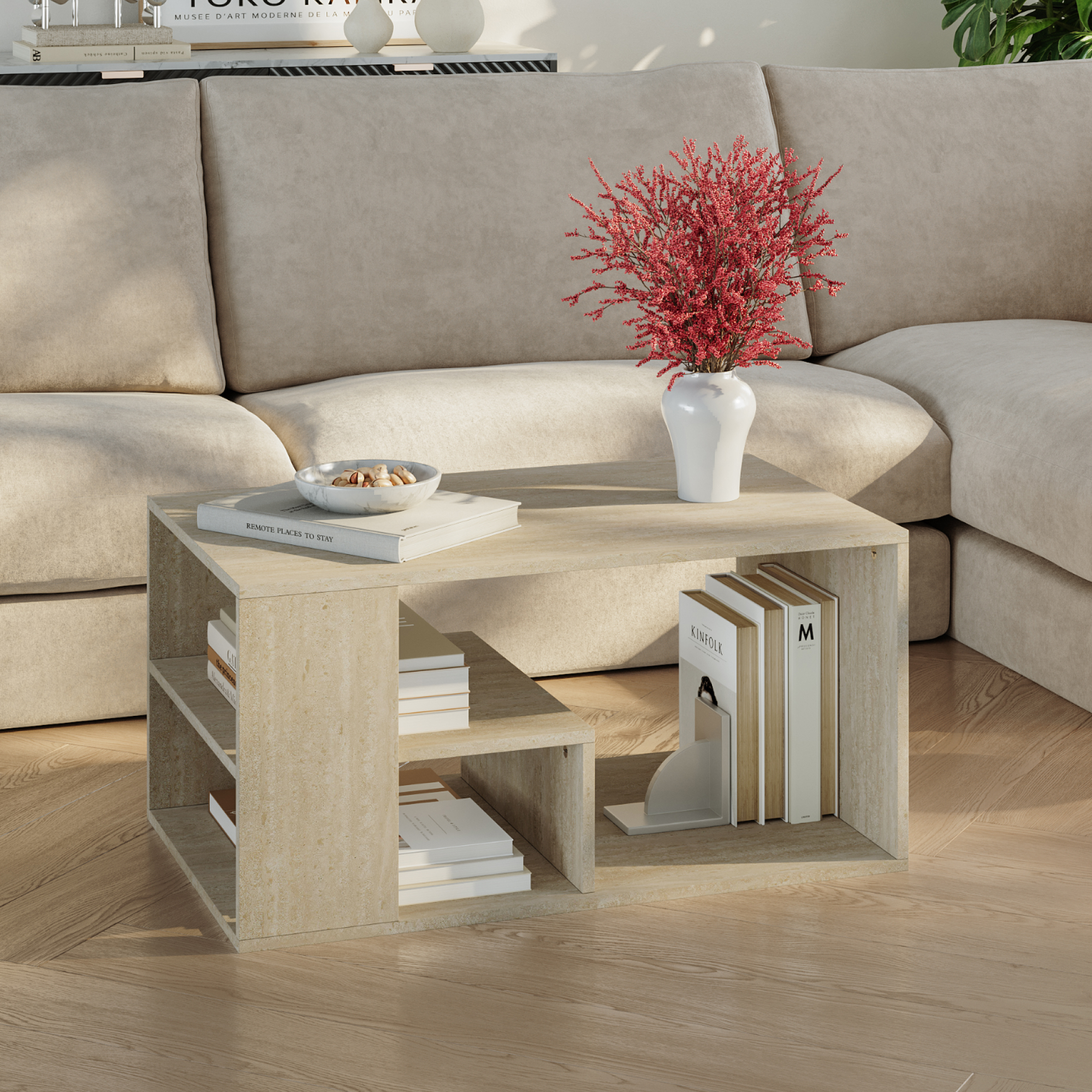 Masă de cafea Antaa 80x50x40 cm, finisaj travertin, [en.casa]