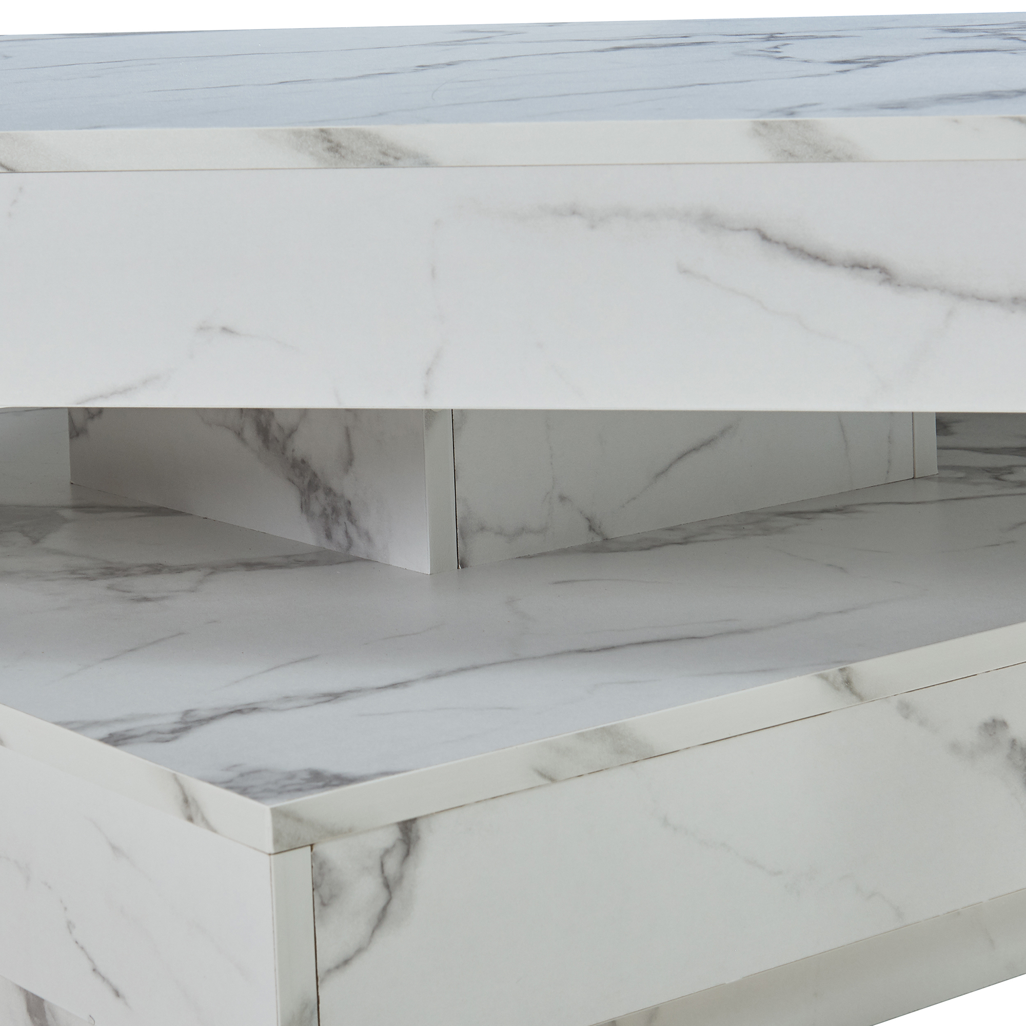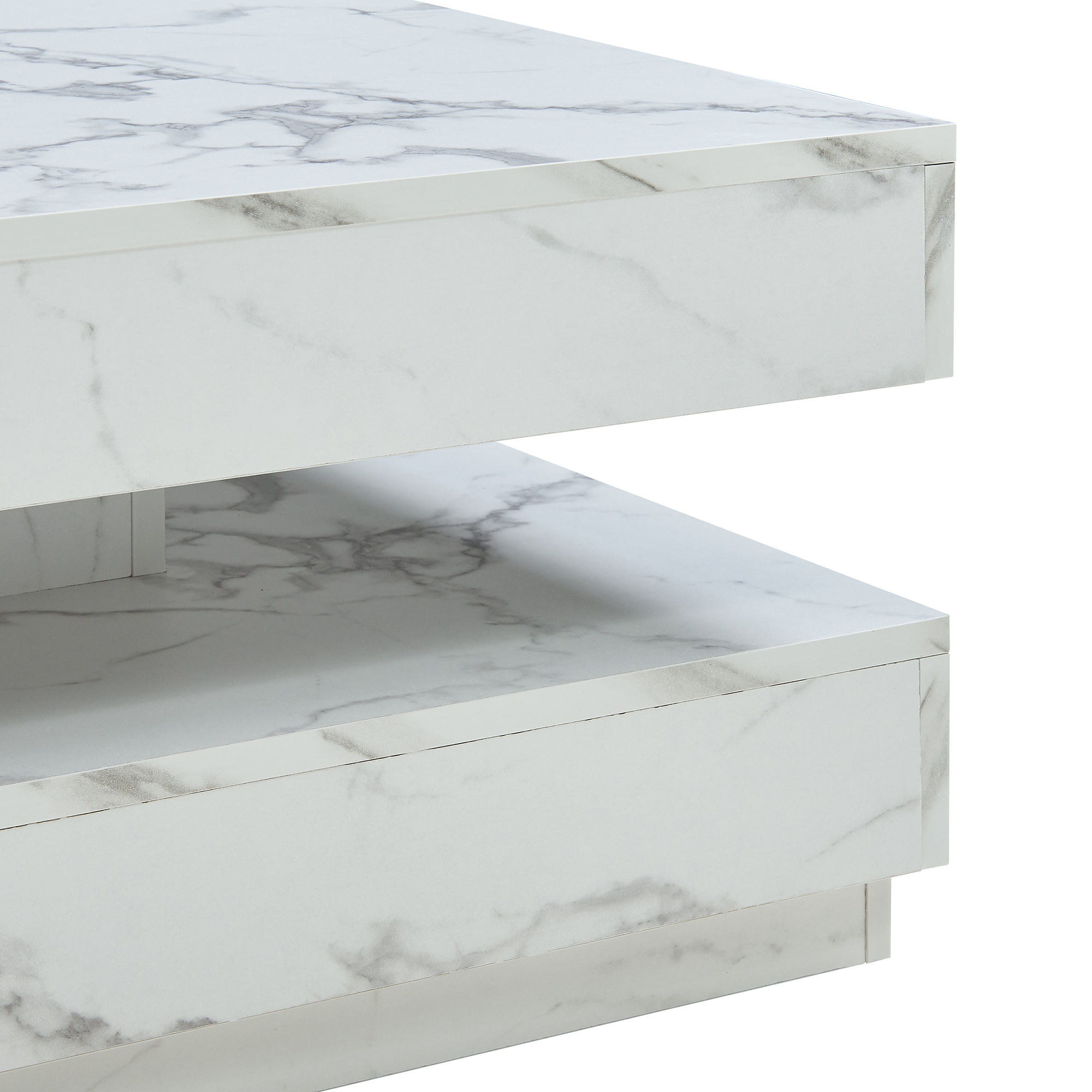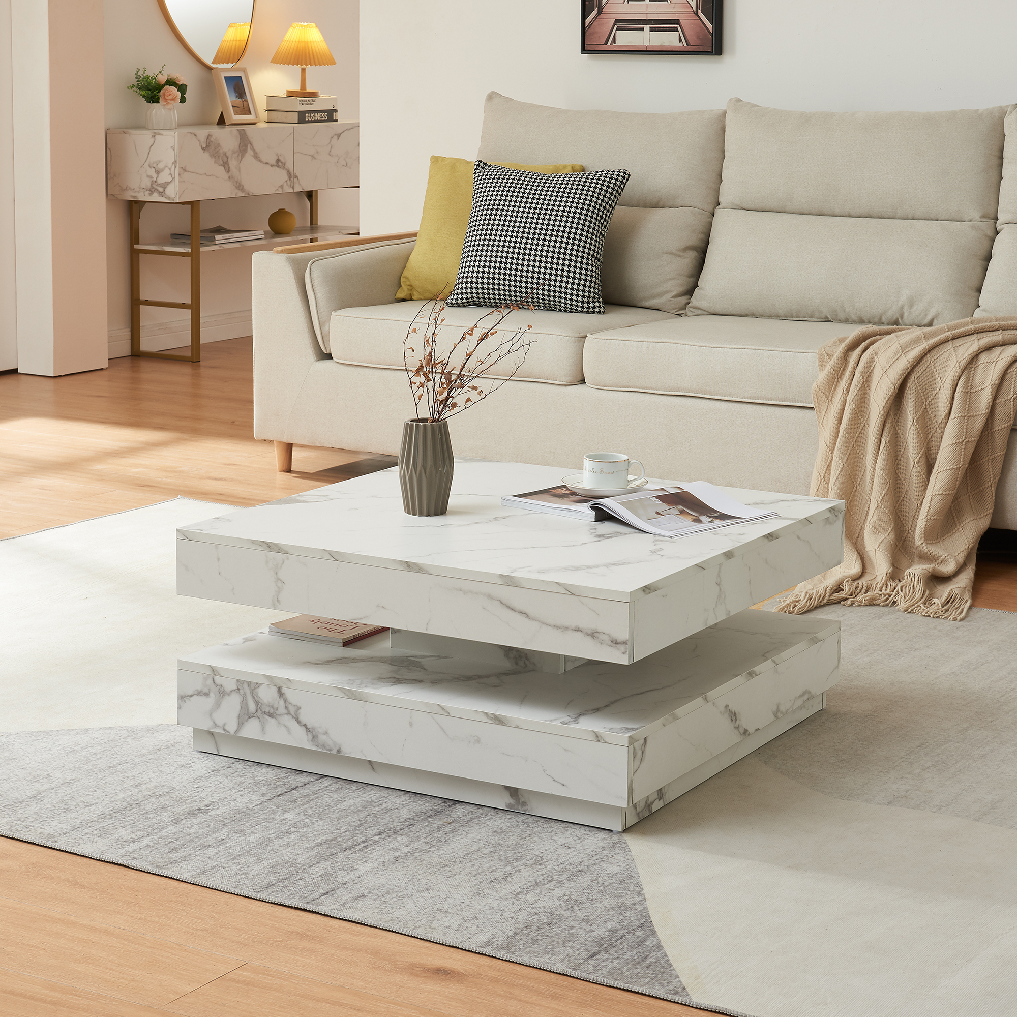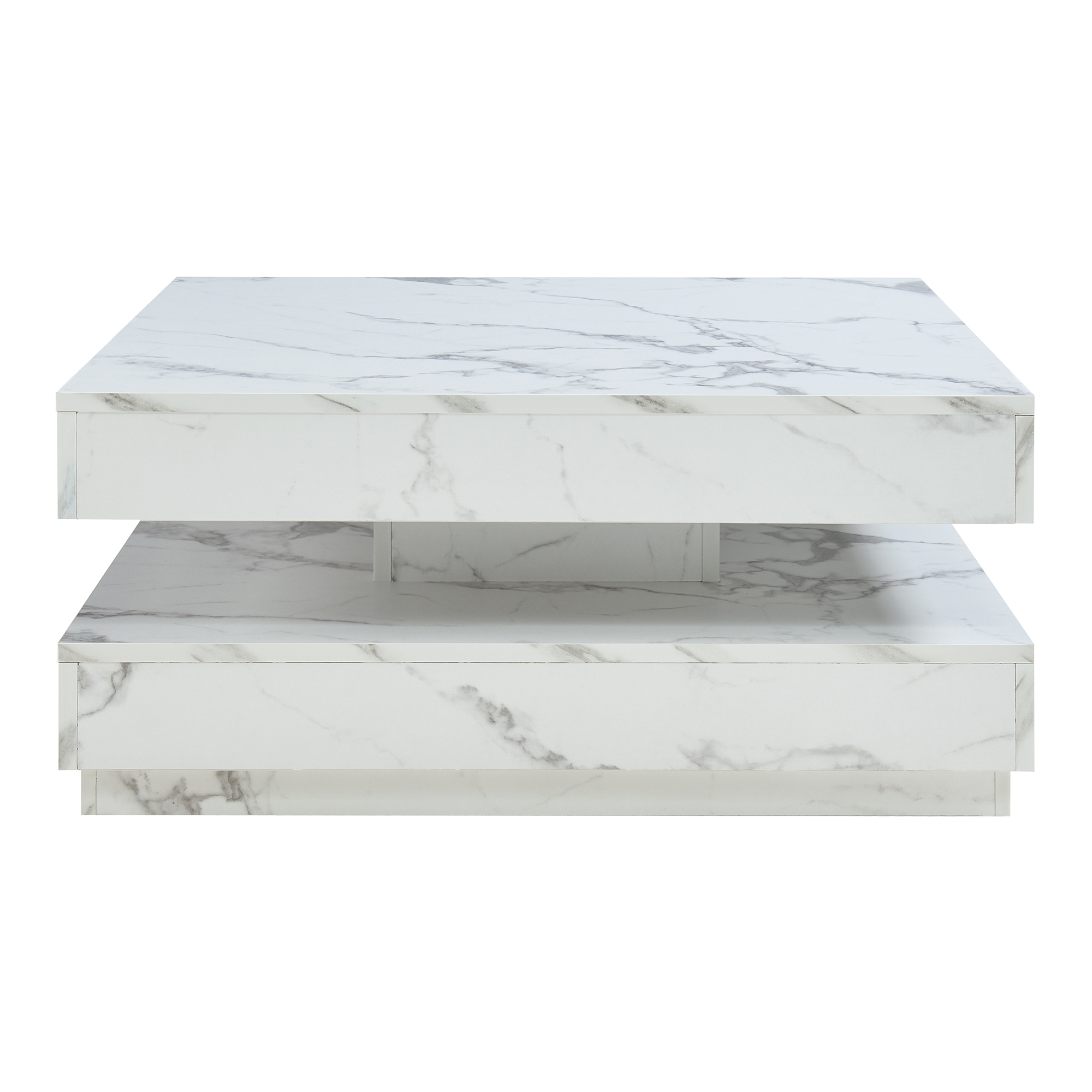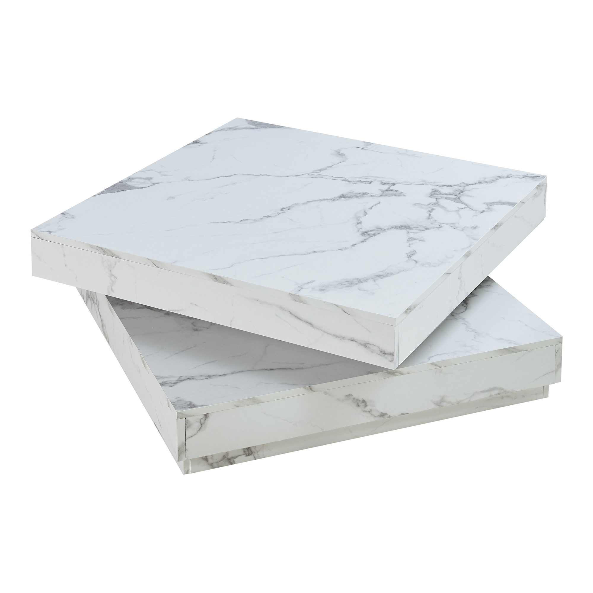 Masă de cafea Florenz 76x76x38 cm, aspect marmură albă, blat rotativ