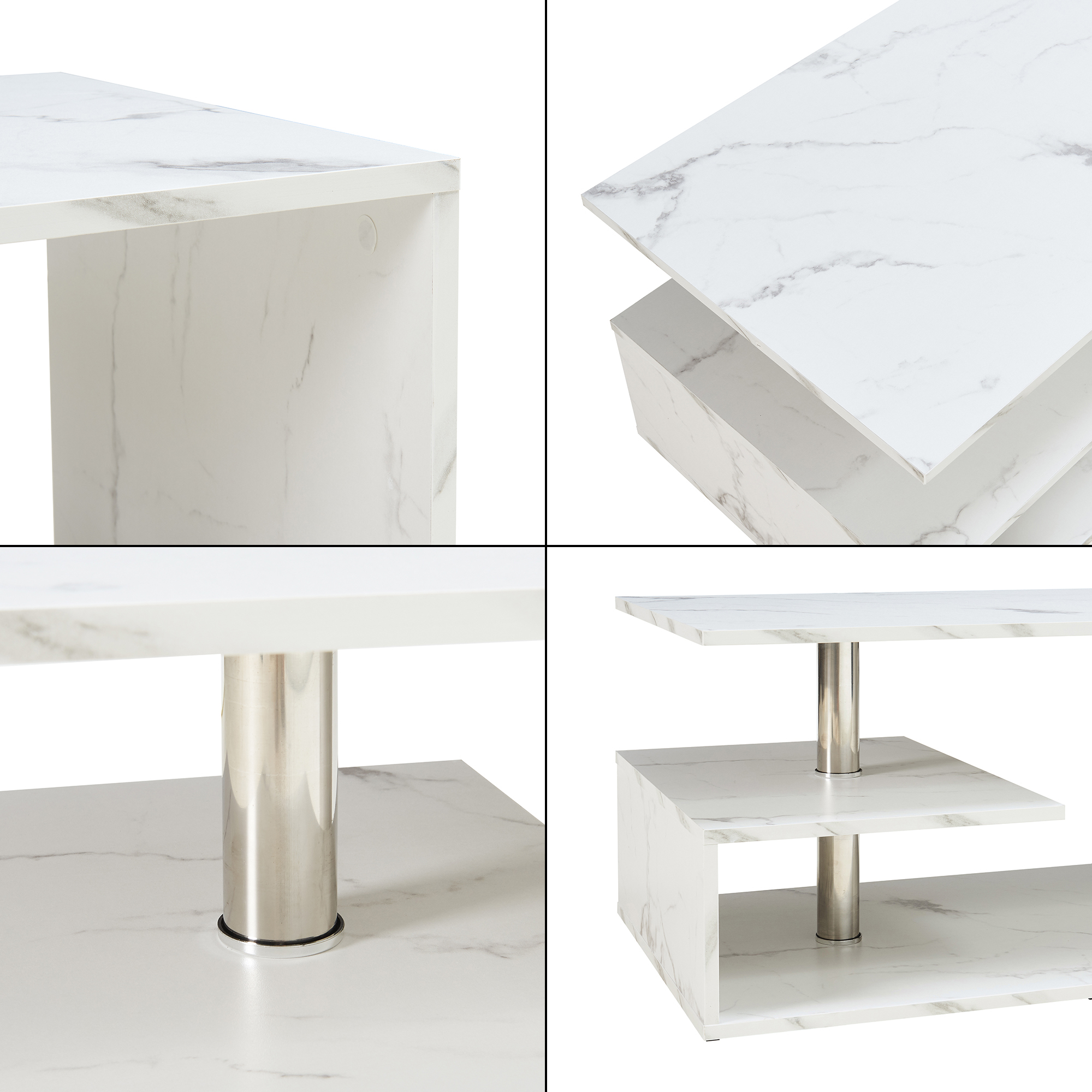 - Design modern și elegant, cu finisaj alb în aspect marmură