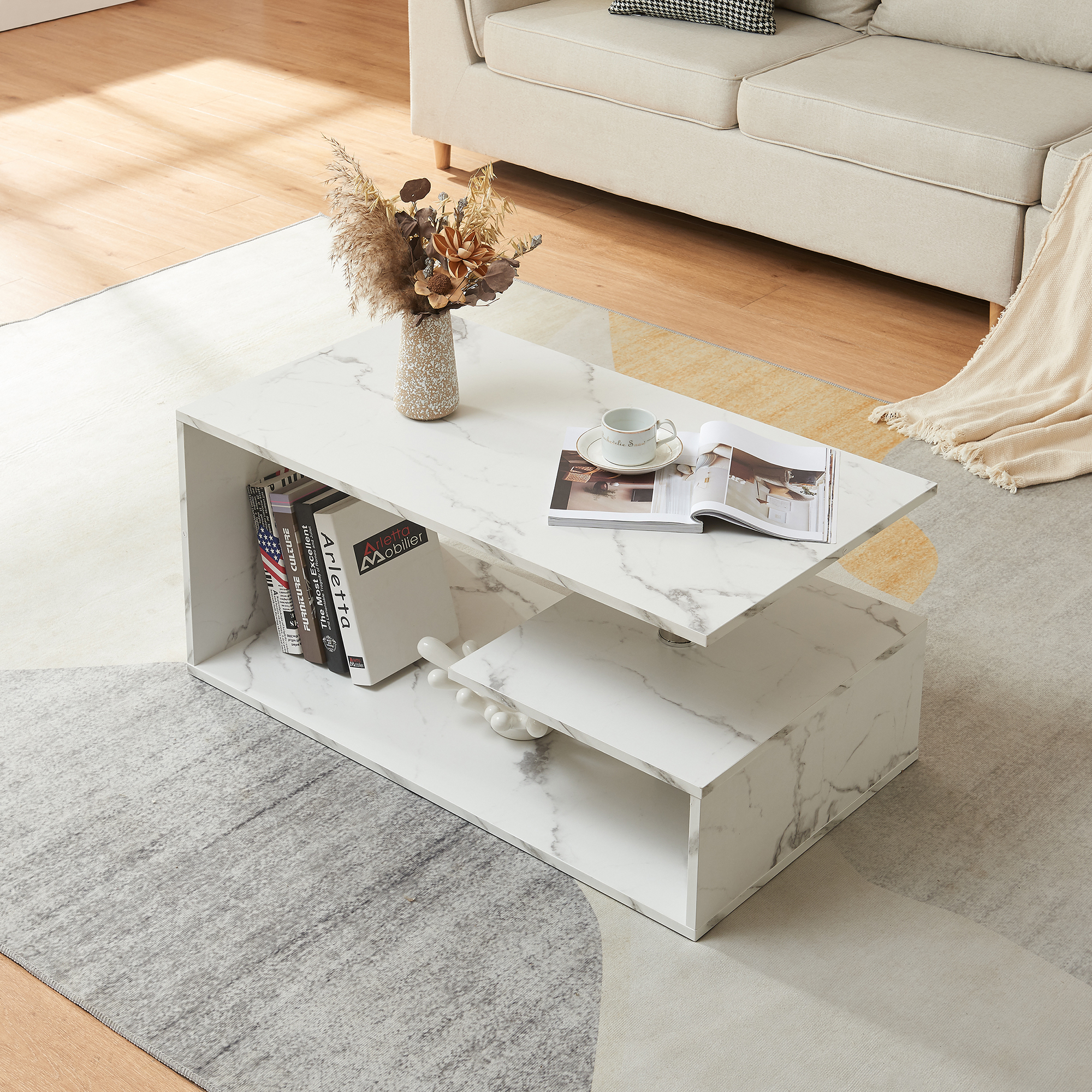 Masă de cafea Haarlem – alegerea ideală pentru un living elegant, aerisit și bine organizat. Cu un design modern și un finisaj sofisticat în aspect marmură, această masă de cafea albă se integrează ușor în decoruri contemporane, minimaliste sau glam.
