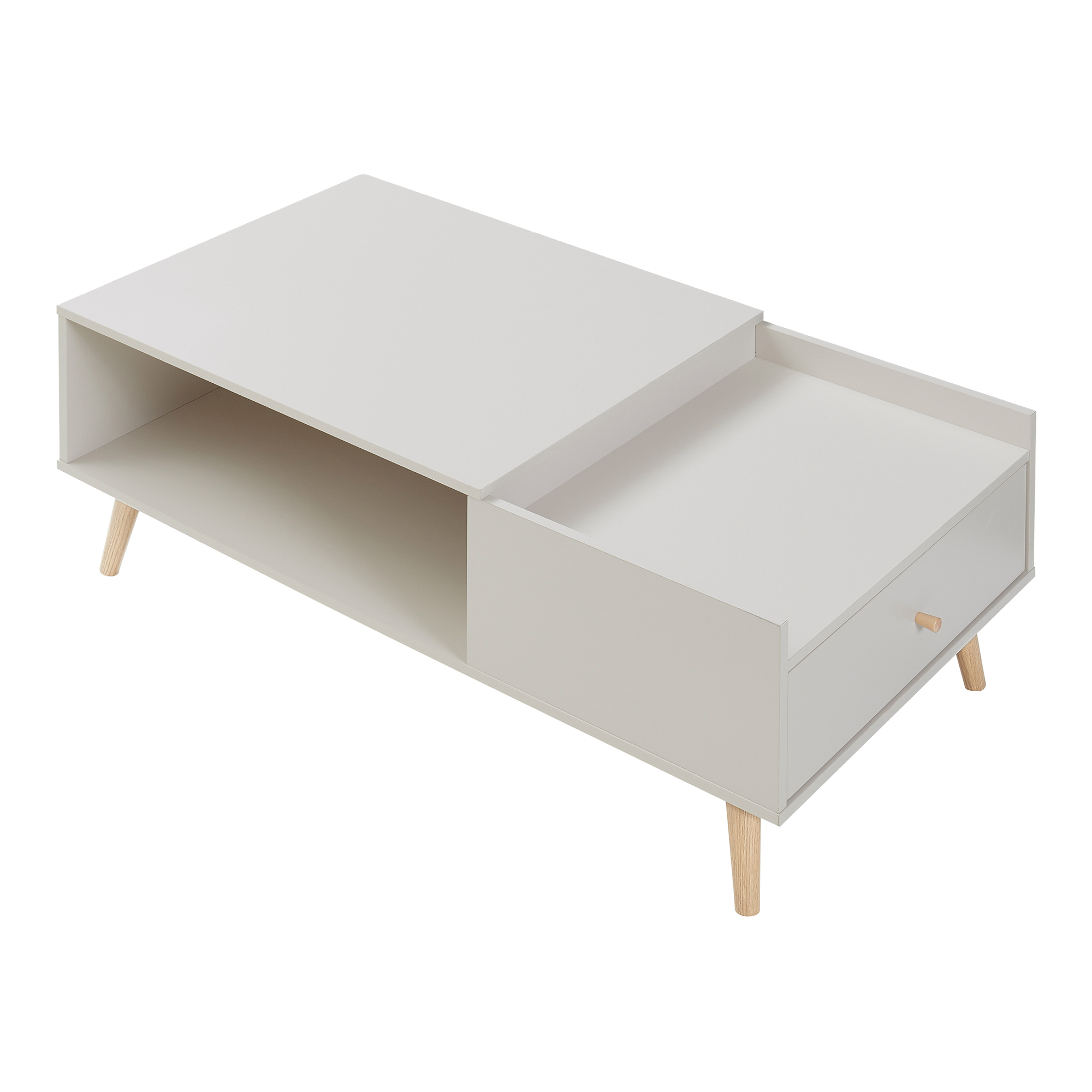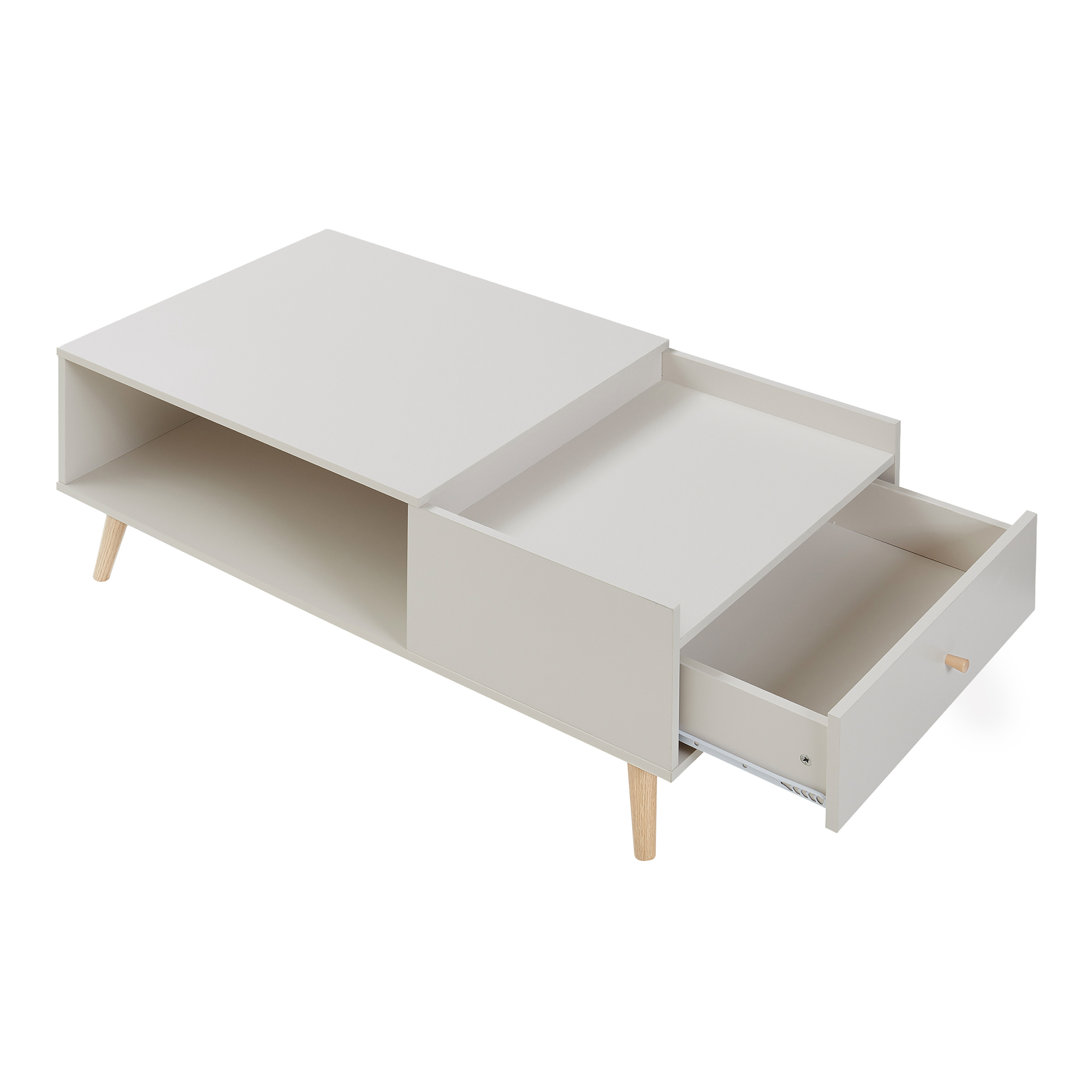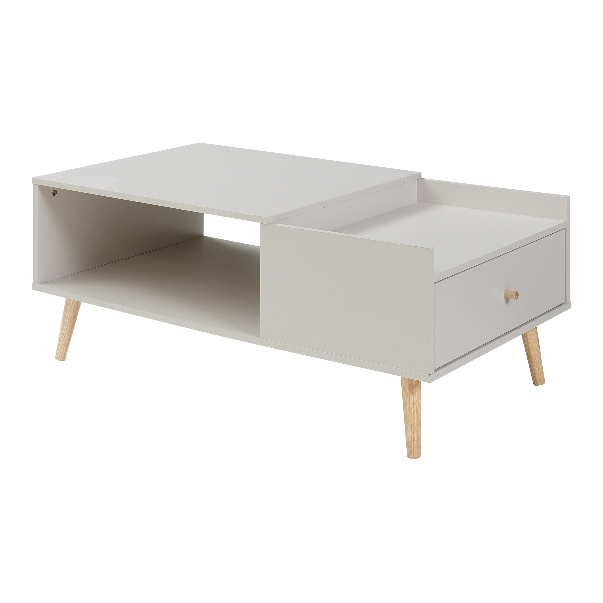 Masă de cafea Hallevil cu sertar, 106x59x44 cm, gri deschis