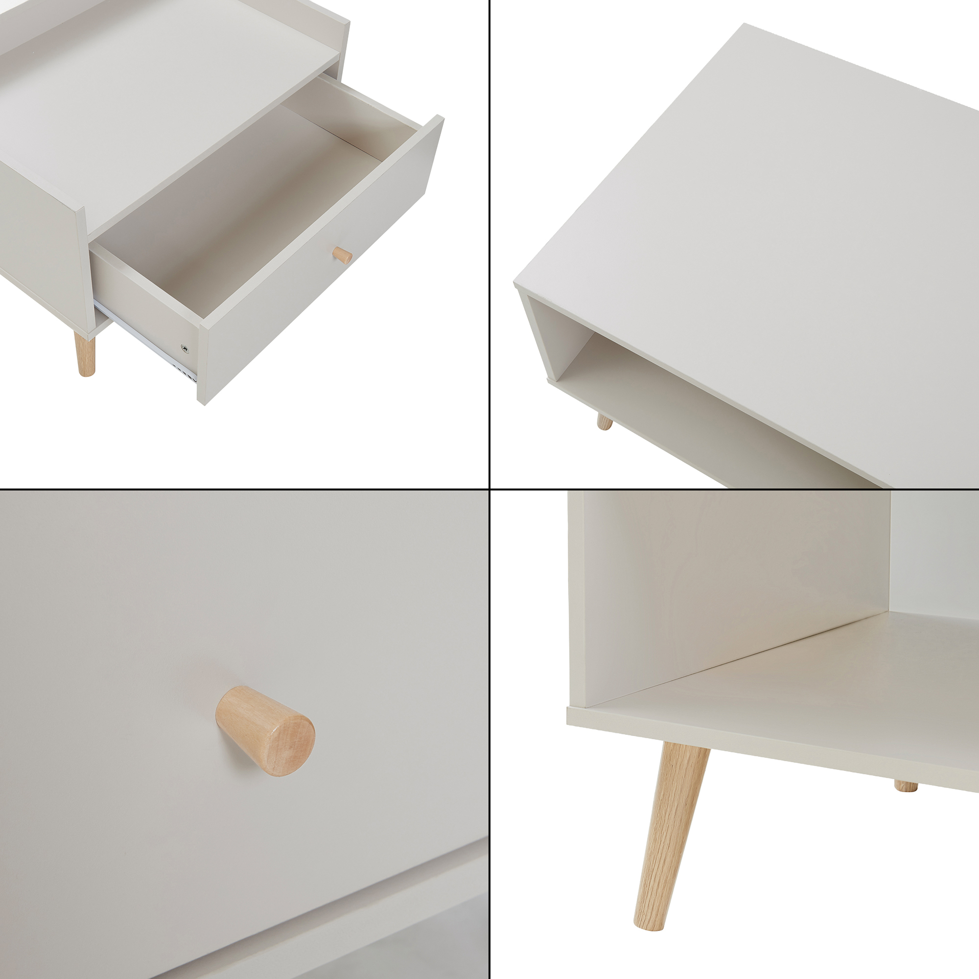 Blatul generos și raftul deschis de la bază oferă spațiu suficient pentru cărți, reviste, decorațiuni, gustări sau băuturi, astfel încât totul să fie la îndemână în timpul momentelor de relaxare. În plus, sertarul lateral adaugă un spațiu discret de depozitare pentru telecomenzi, încărcătoare sau alte obiecte de zi cu zi.