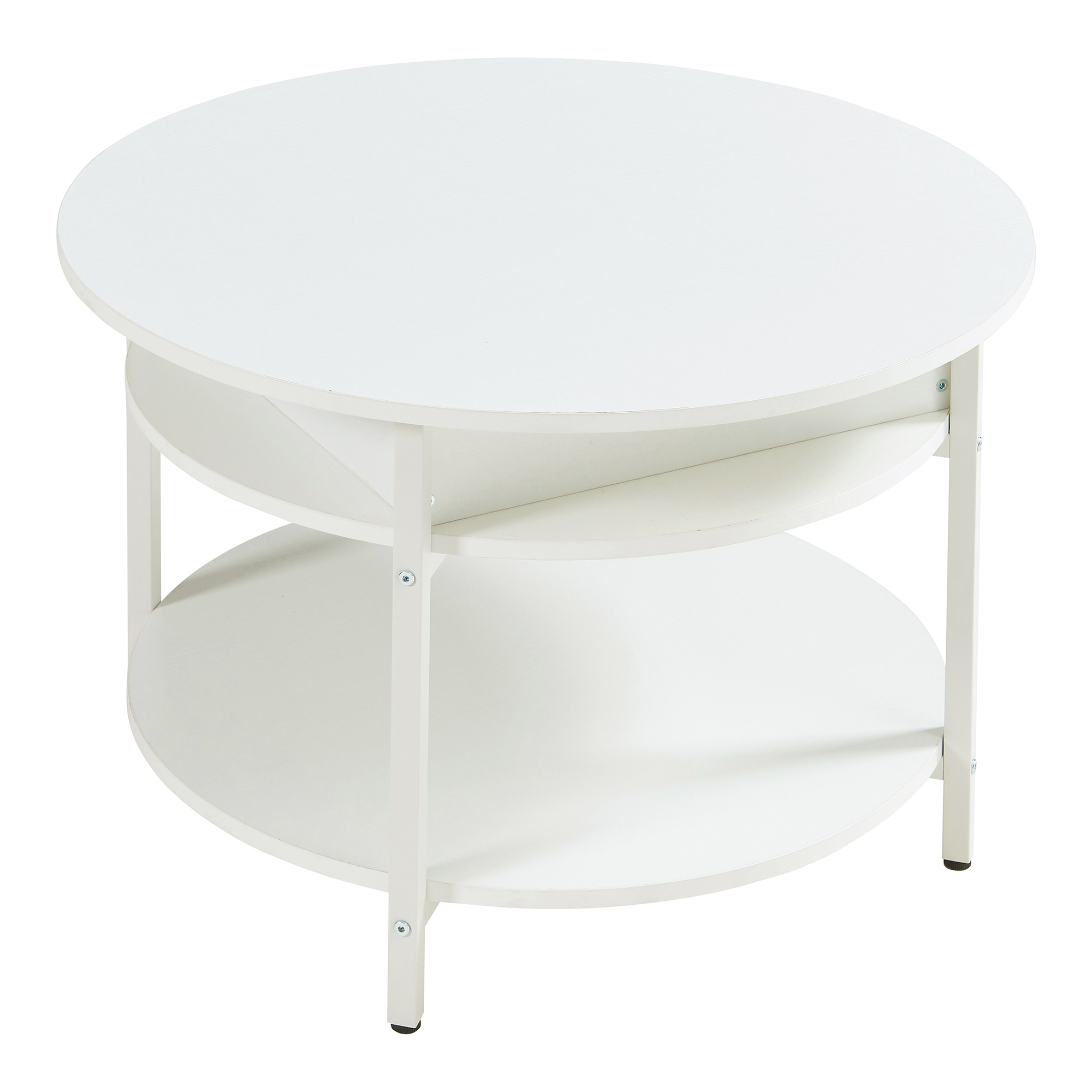 Este o masă de living albă potrivită pentru momentele de relaxare, servirea cafelei sau organizarea eficientă a spațiului. Cele patru picioare robuste din oțel contribuie la stabilitate, iar suprafața este ușor de curățat, fiind practică pentru utilizarea zilnică.