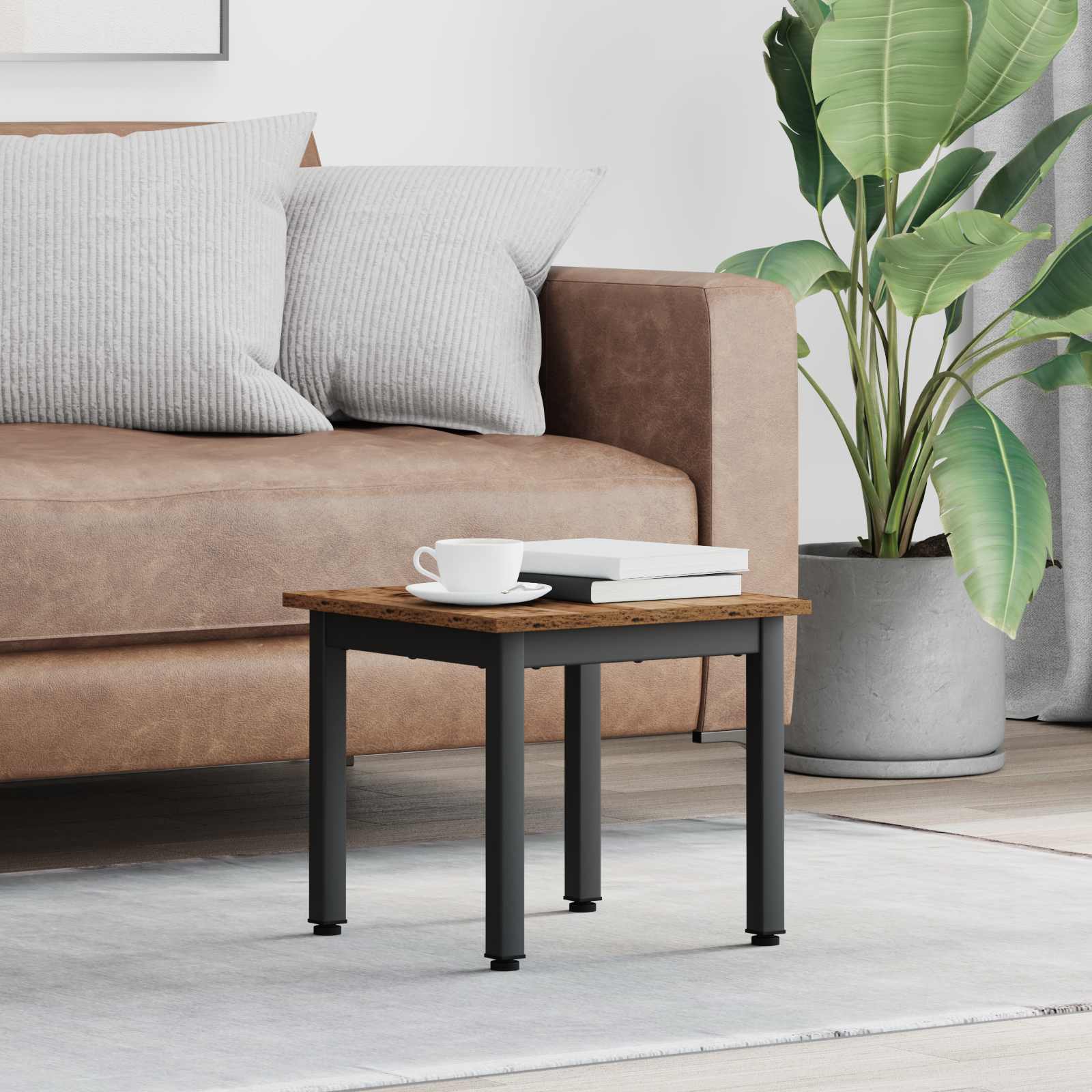 - Construcție robustă: Măsuța e din lemn prelucrat și metal, oferind un suport de încredere pentru lucrurile tale. Aceste materiale asigură stabilitate, ideală pentru utilizarea zilnică într-o casă agitată. E făcută să dureze, rezistând testului timpului și abuzului zilnic fără a compromite calitatea.