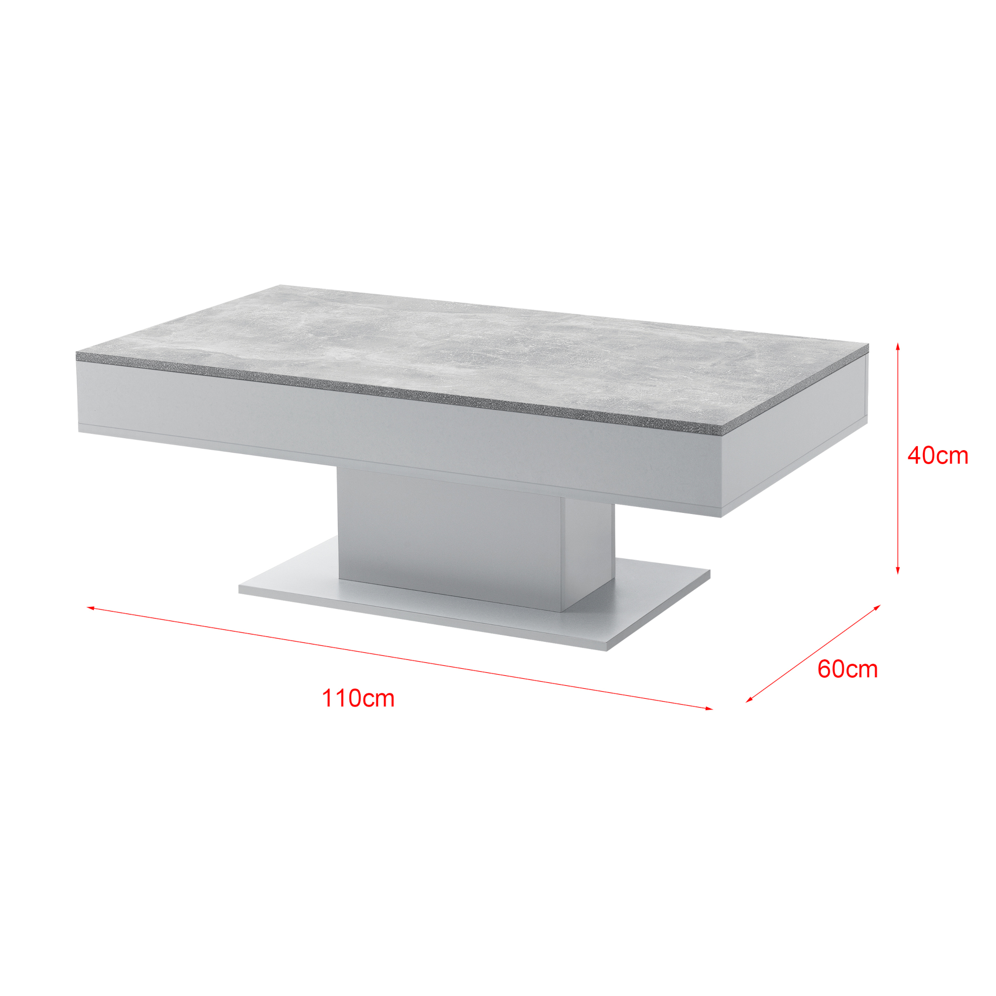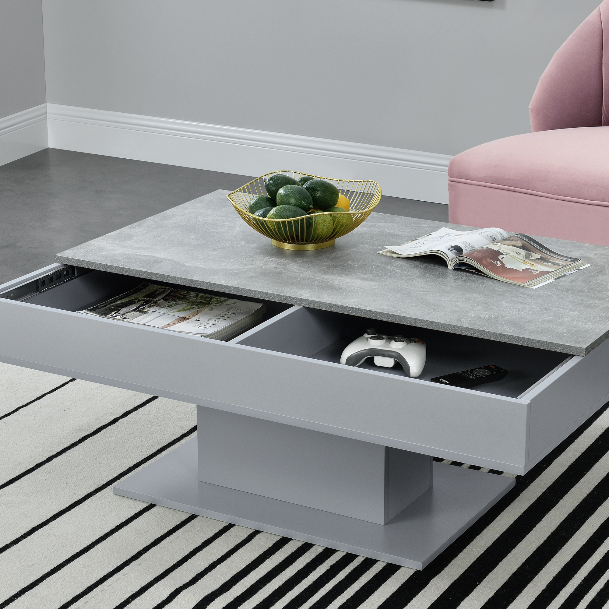 Masă de cafea modernă Lünen cu 2 spații de depozitare, gri beton