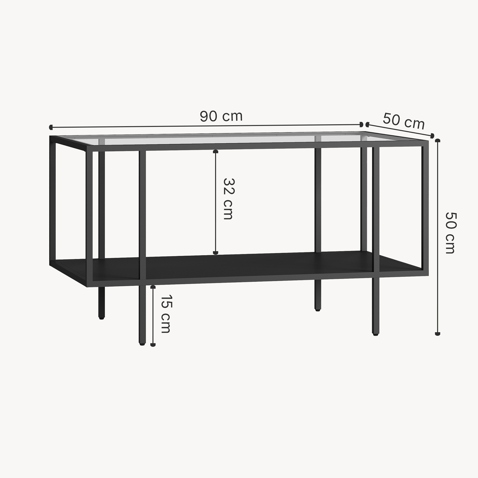 Masă de cafea Nynna 90x50x50 cm neagră, cu blat din sticlă