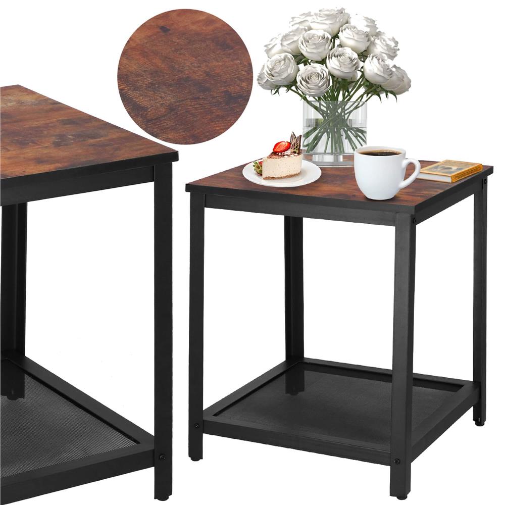 Masa de cafea patrata, noptiera cu cadru otel si polita de depozitare, 45x45x55 cm, maro rustic Household NewTrend