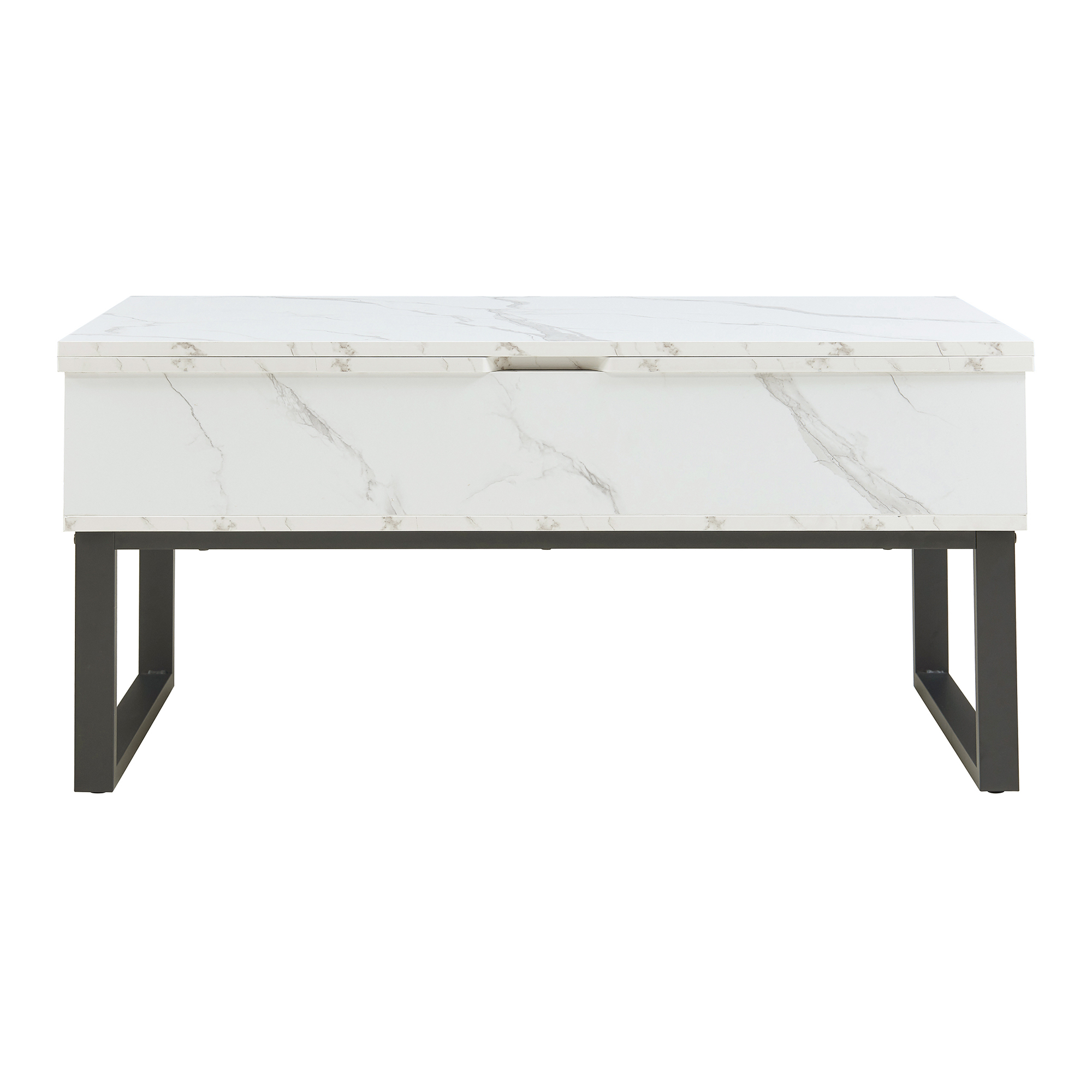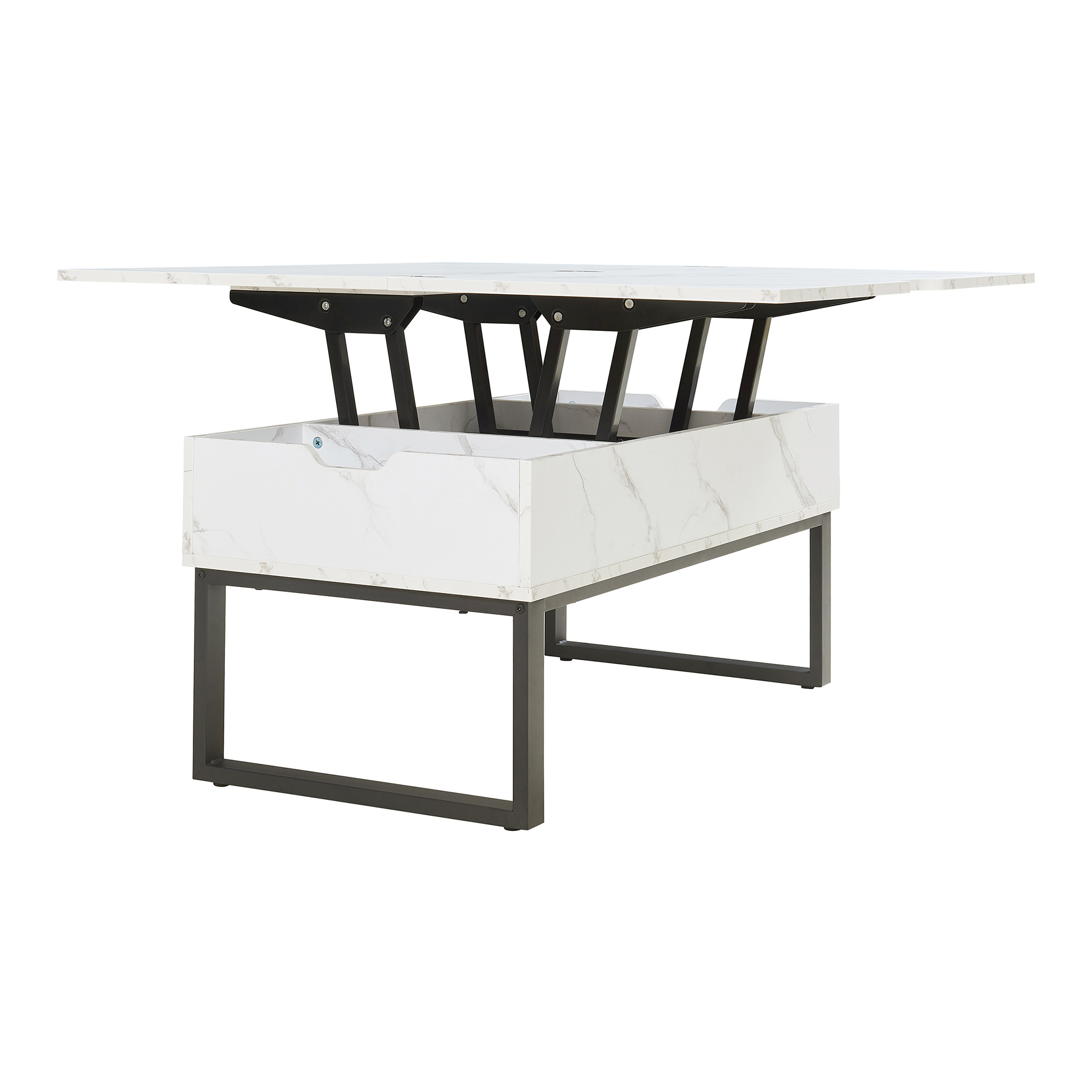 Masă de cafea Rauli cu blat rabatabil și spațiu depozitare, alb marmorat