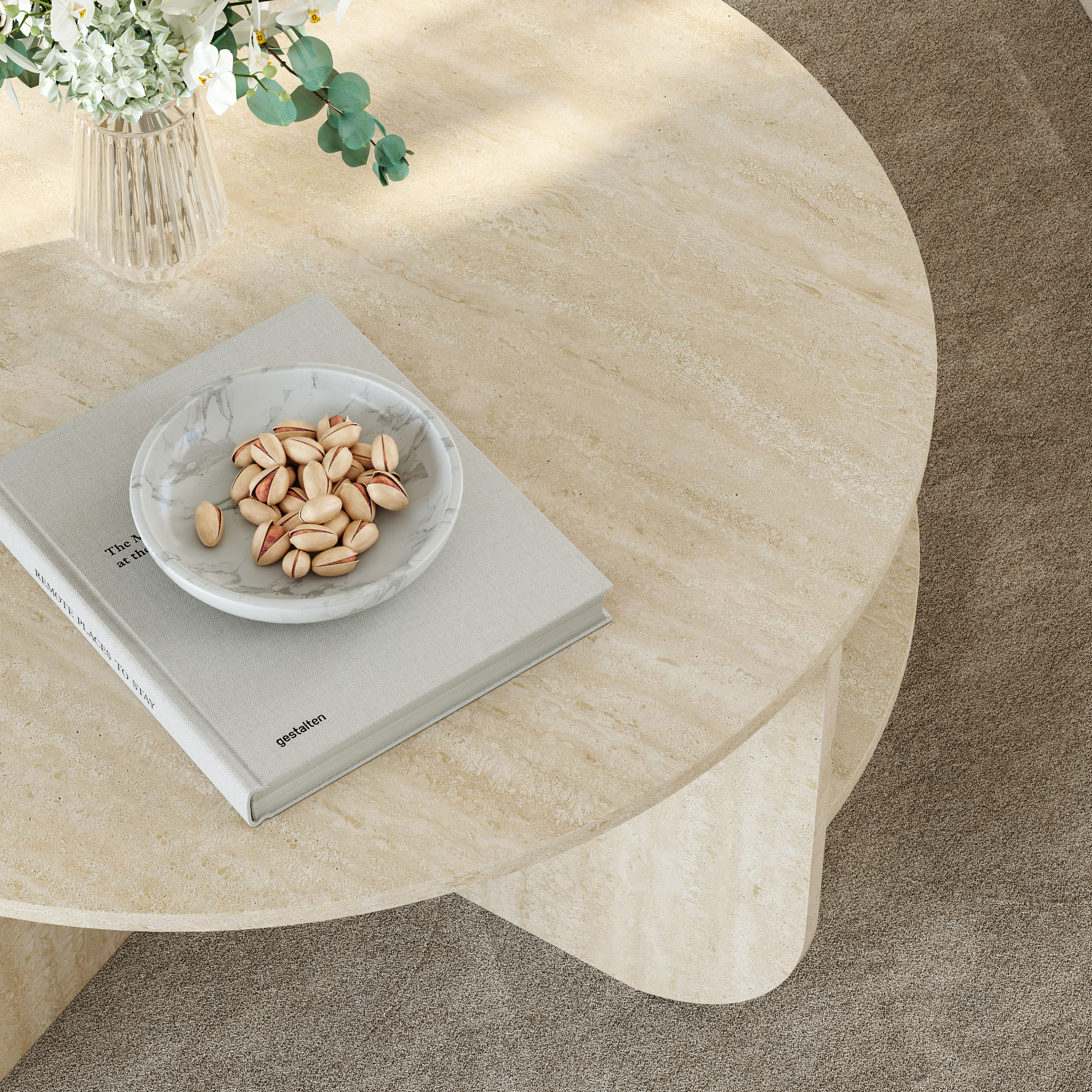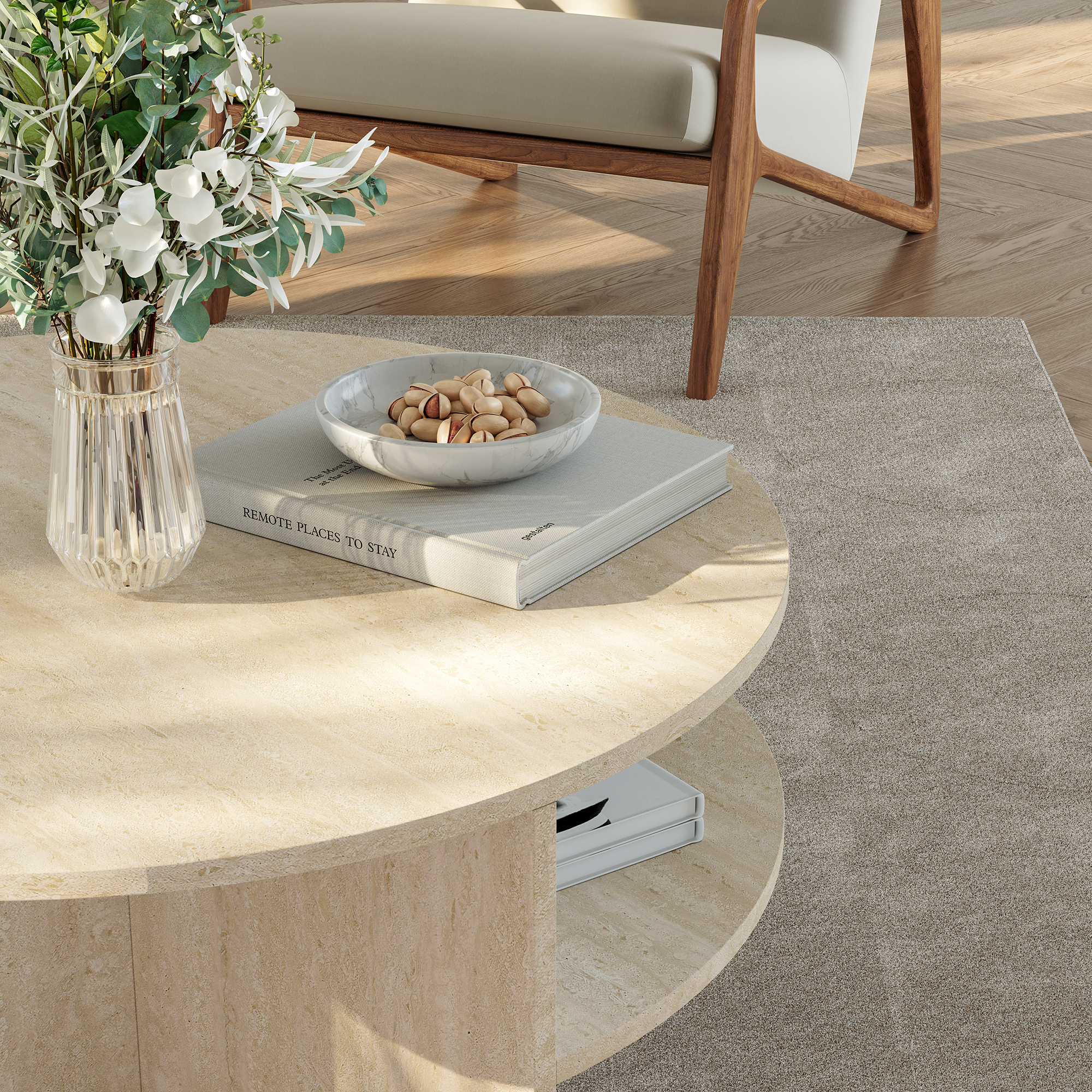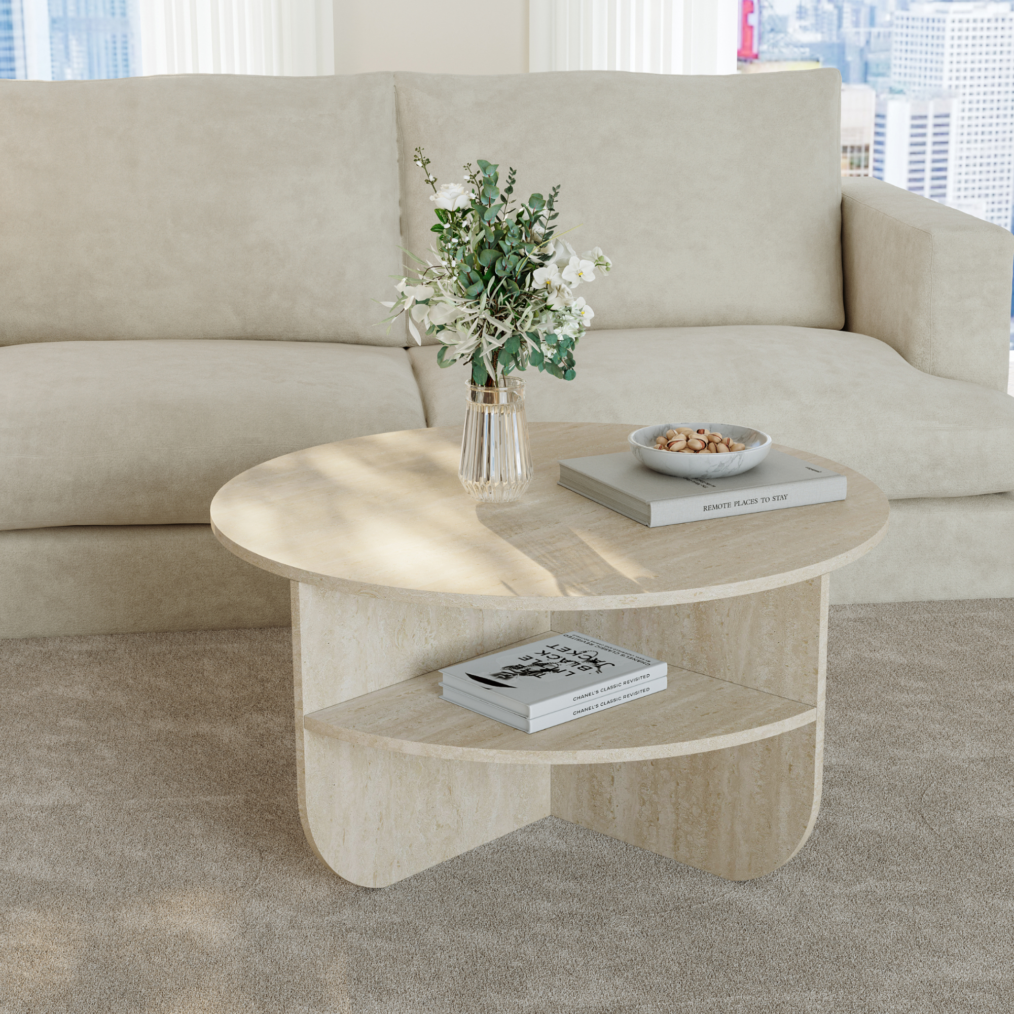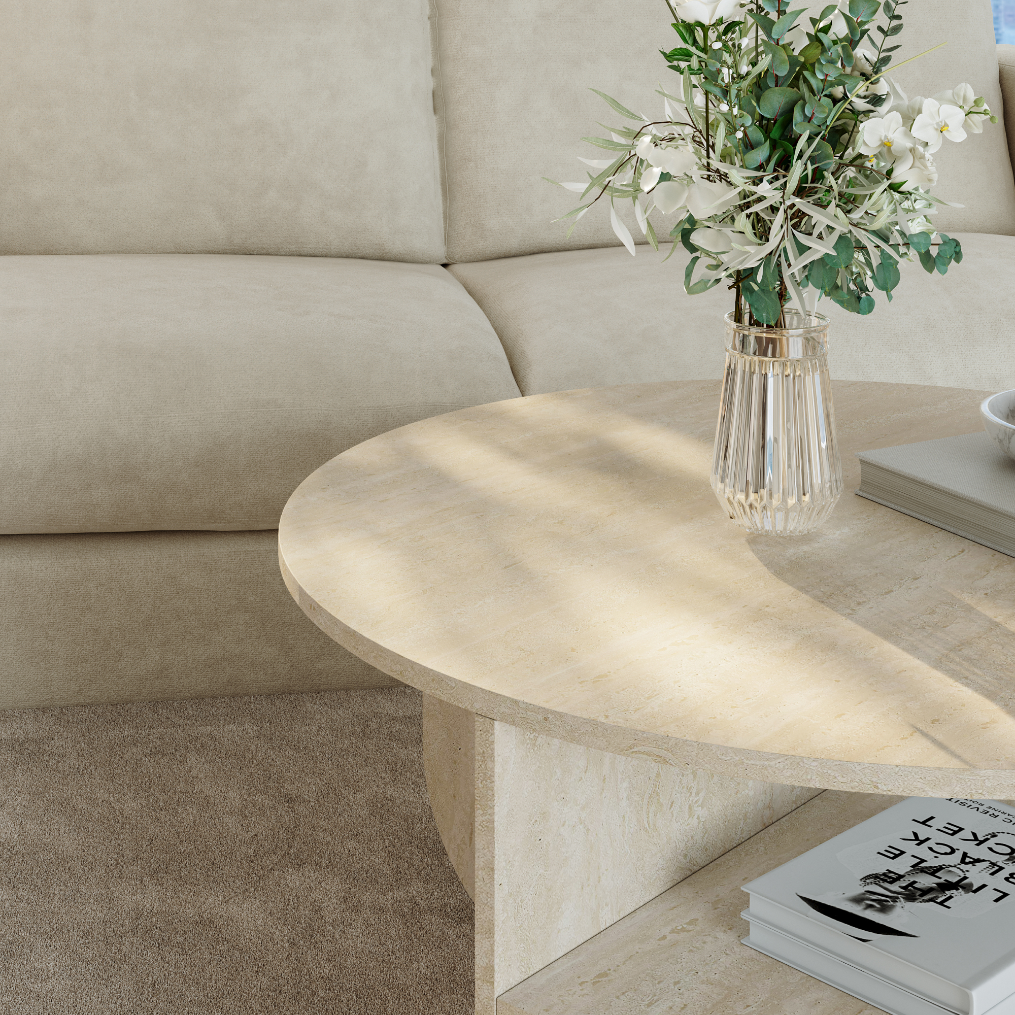 Această masă de living este potrivită pentru a susține obiecte decorative, reviste, cărți, cești de cafea sau gustări atunci când petreci timp cu familia ori prietenii. Datorită formei rotunde și nuanței calde de travertin, creează o atmosferă primitoare și rafinată.