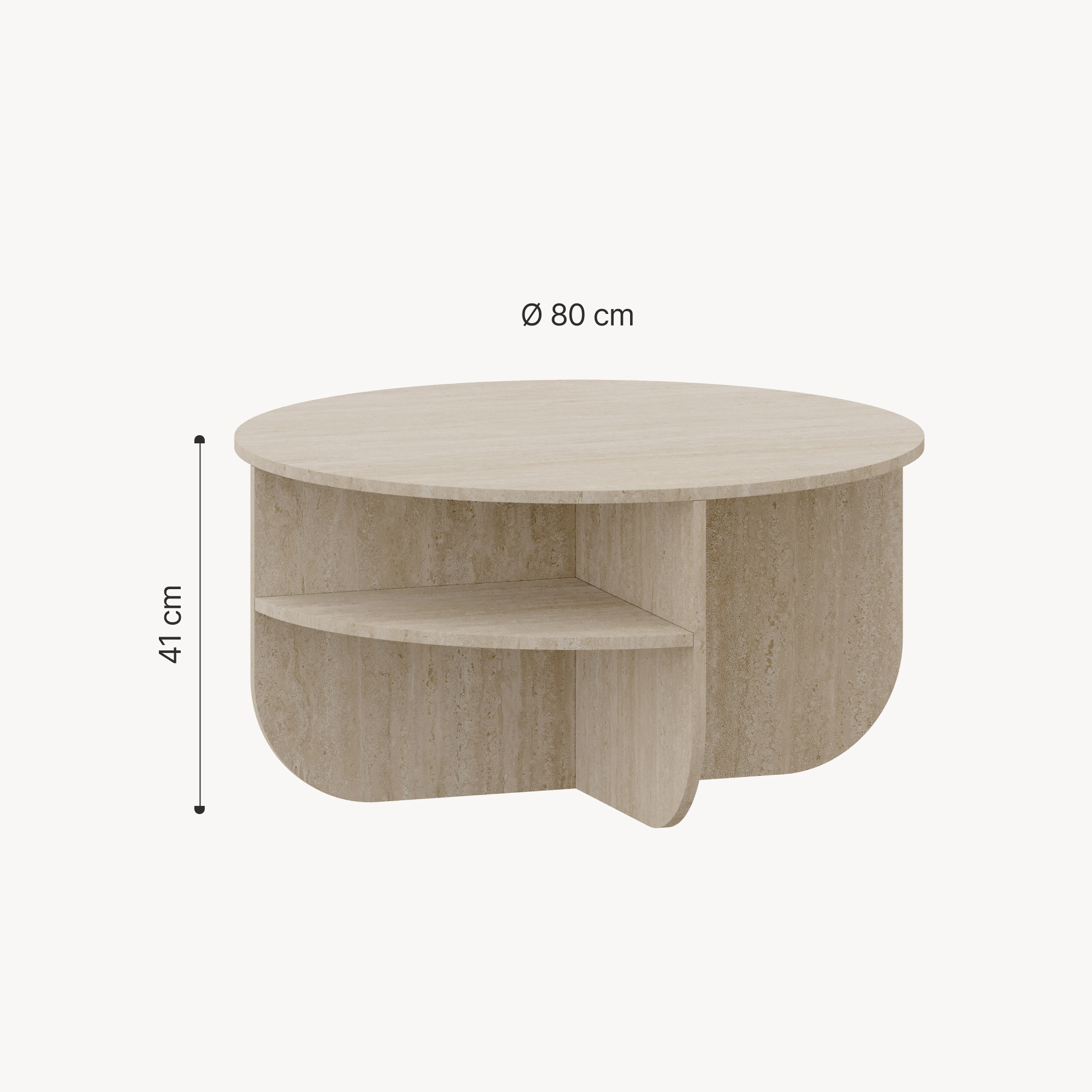 Masă de cafea Reykhon, rotundă, 80x41 cm, finisaj travertin