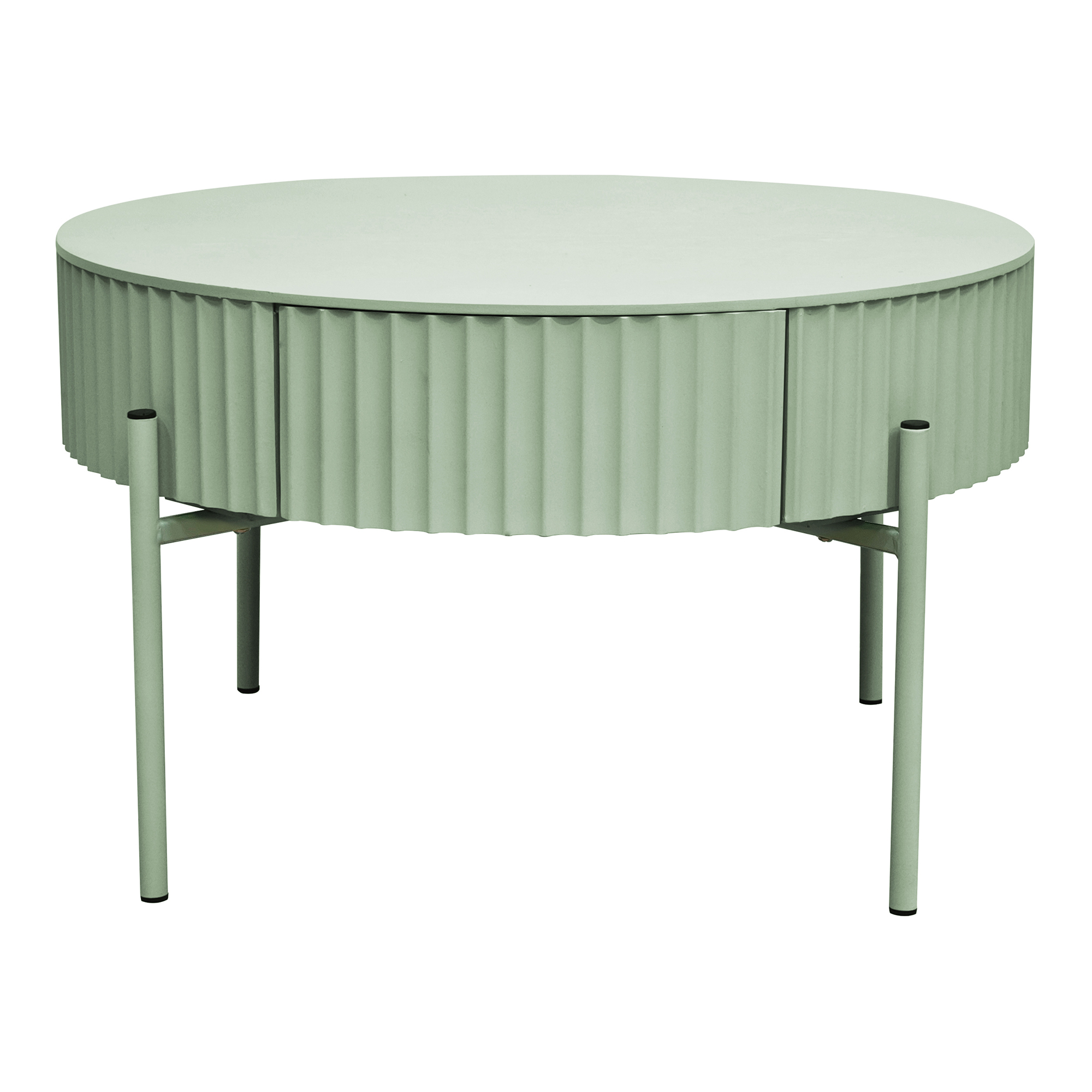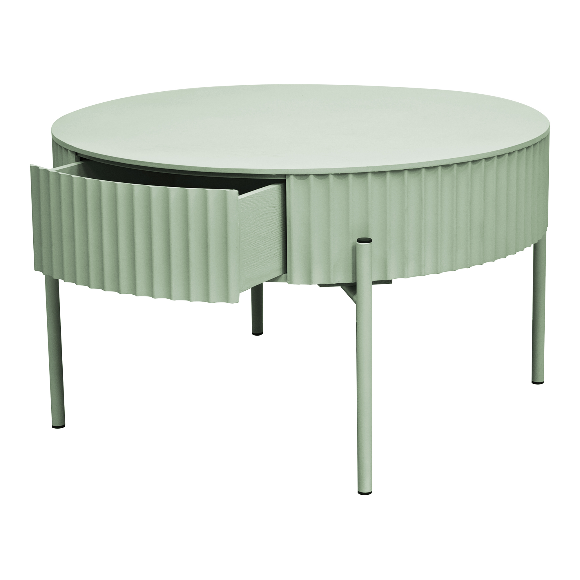 Masă de cafea Rill – o alegere inspirată pentru un living aerisit, modern și bine organizat. Cu un design rotund elegant, finisaj în nuanță verde mentă și sertar integrat, această masă de cafea adaugă stil și funcționalitate în orice colț de relaxare.