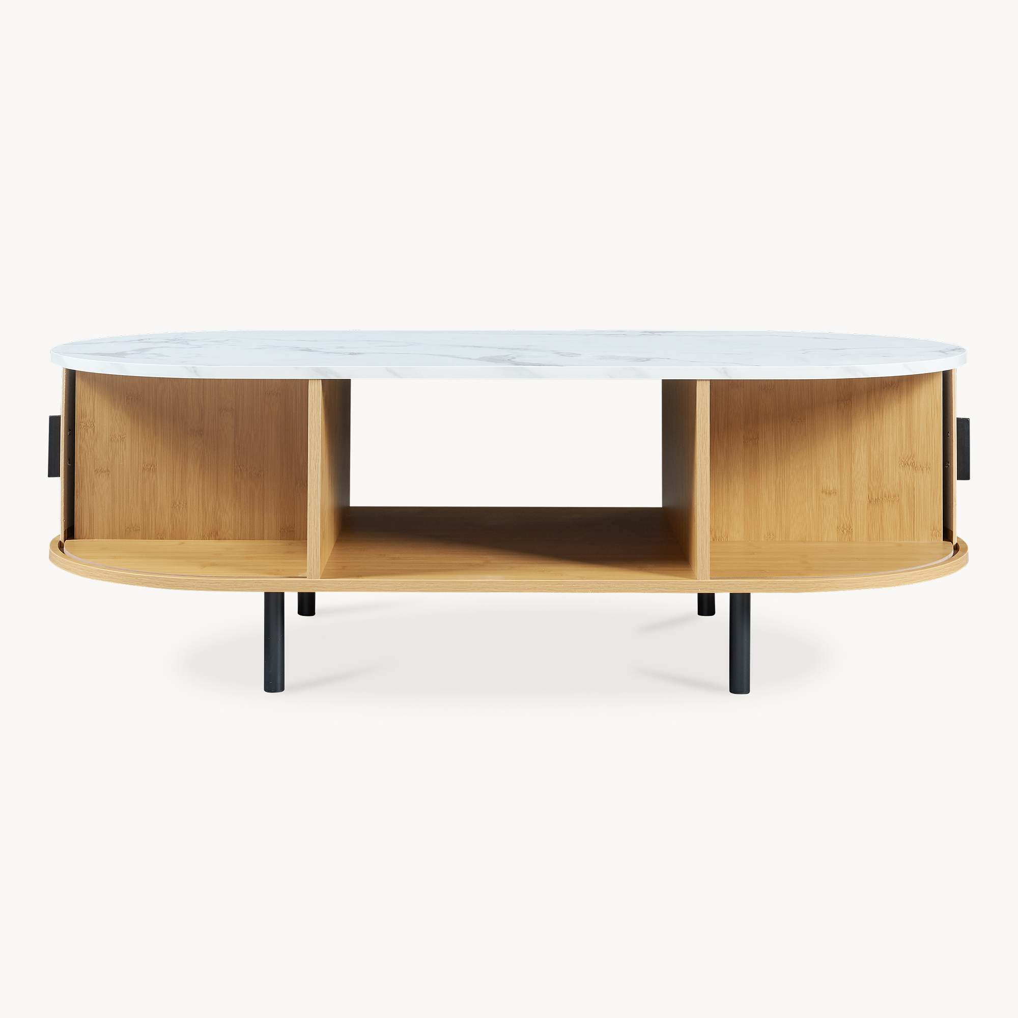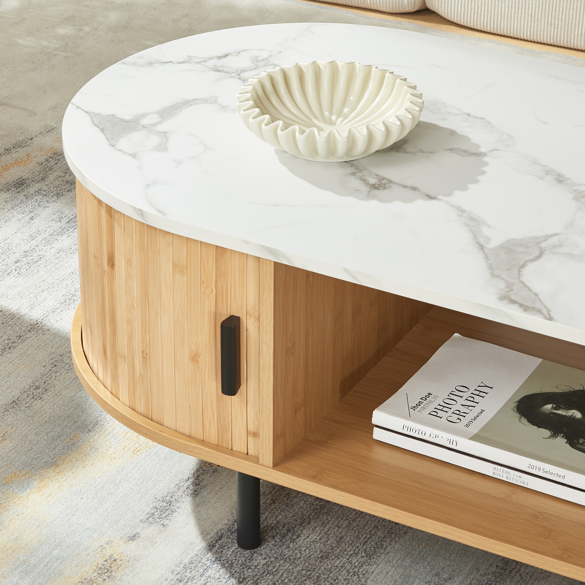 Masă de cafea Tvedestrand – o alegere inspirată pentru un living modern, aerisit și bine organizat. Cu un design elegant, în nuanțe naturale de bambus și blat cu efect marmură albă, această masă de cafea pentru living adaugă stil și funcționalitate în orice amenajare.