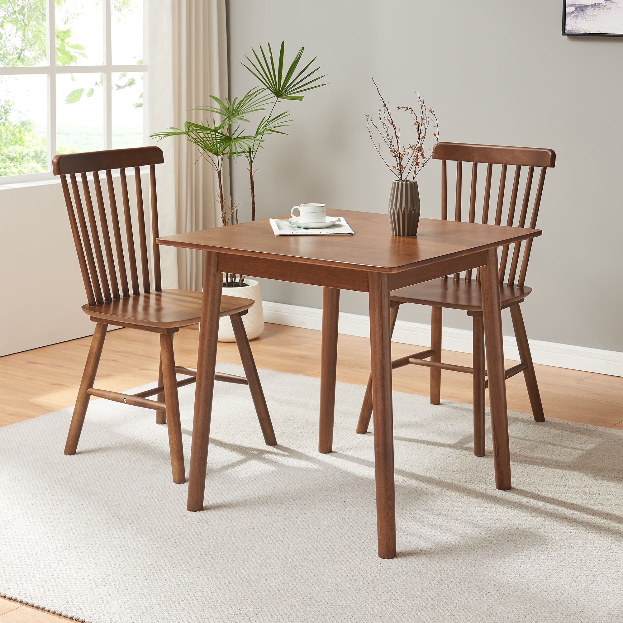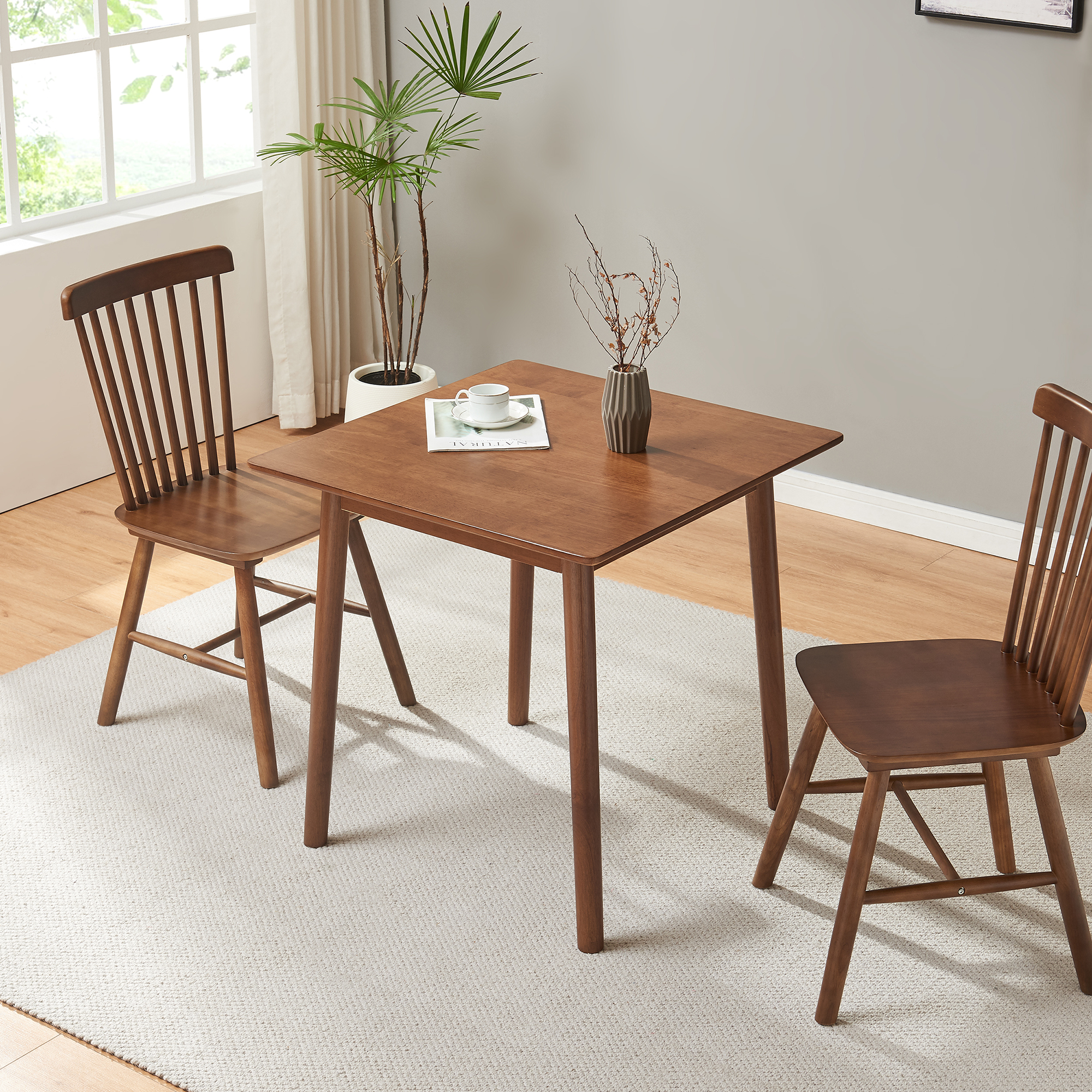 Masă de dining Klijori pentru 2 persoane, 75x75 cm, aspect nuc